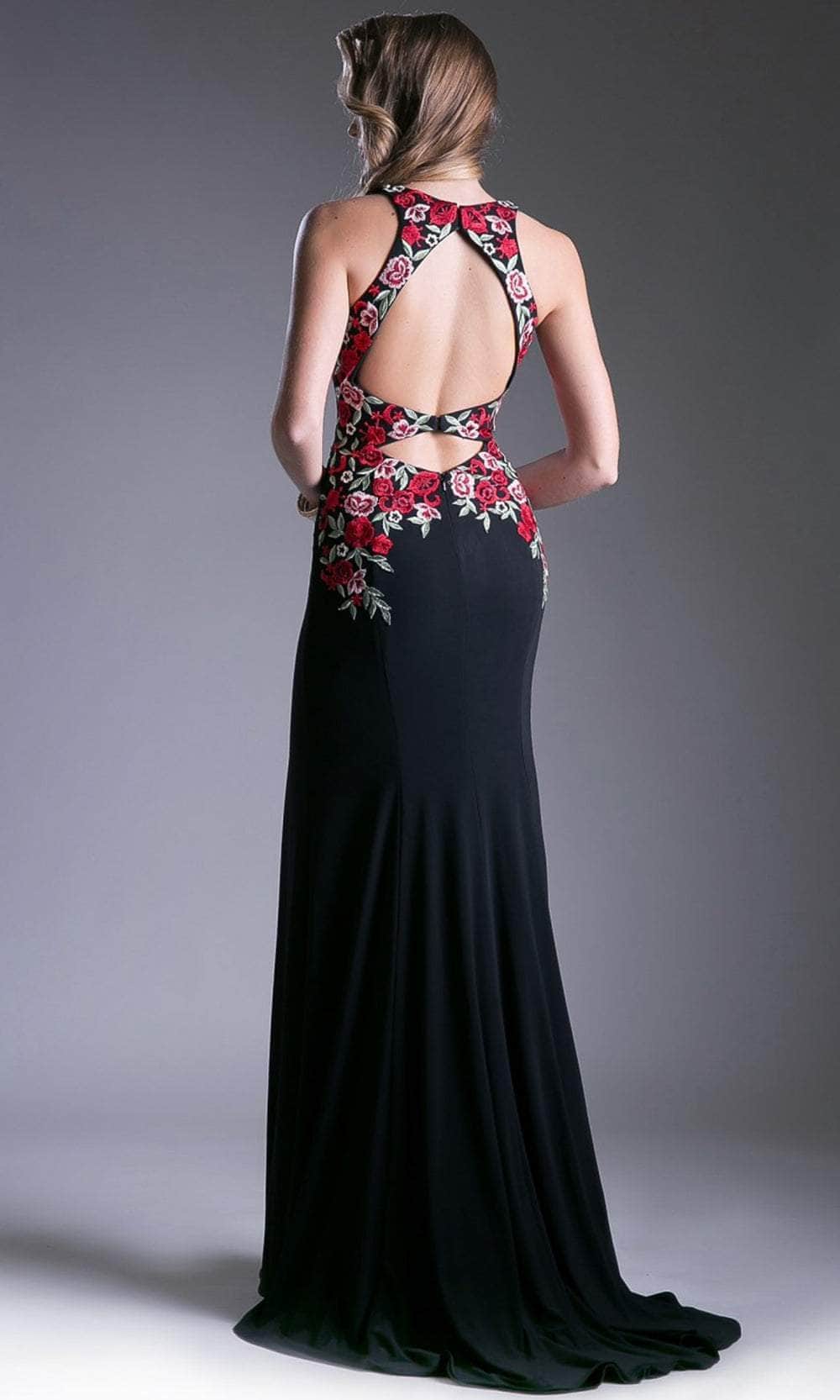 This Ladivine 62236 is excellent for prom or any other special evening event! This dress has a mesh bust inset and a sleeveless plunging V-neckline. While the floor-length hem of the sheath skirt flows gracefully and ends in a sweep train, the entire bodice is covered in floral applique embroidery. The back is sexy and open, exposing some skin before closing with a zipper. Capture that commanding presence in Ladivine 62236 and command everyone's attention. The model is wearing Black color.