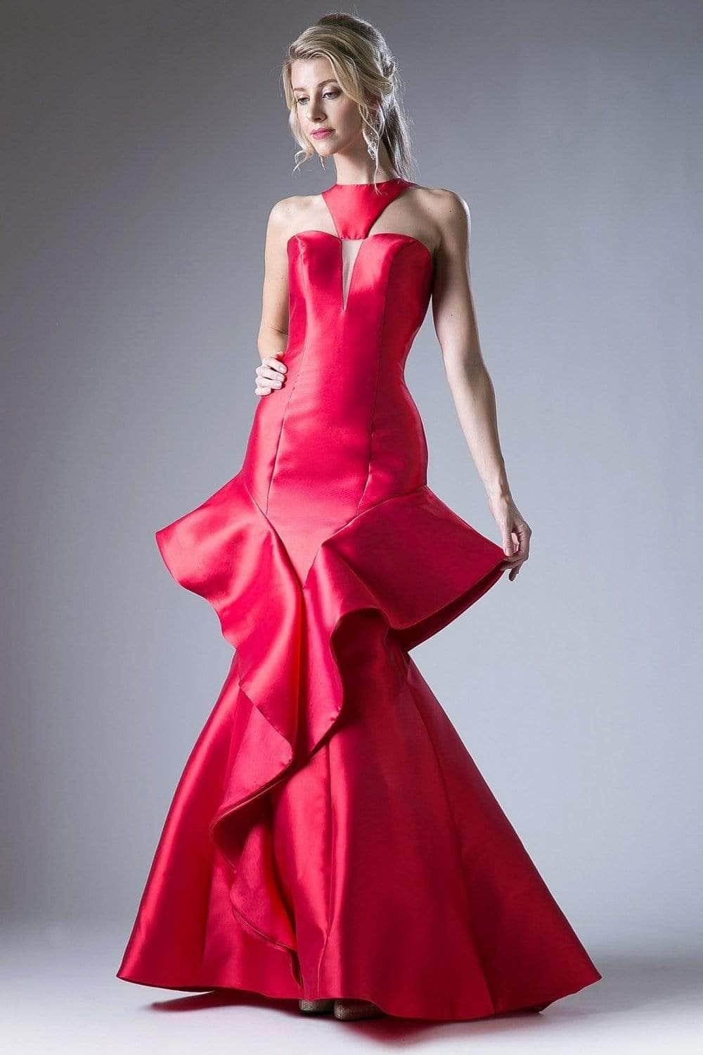 Orchestrate a touch of drama to the proceedings at your lavish event with the Ladivine 71428 creation. This show-stopper is crafted from a smooth fabric with flowing lines and has an illusion plunging notch and a cut-in high halter neckline. There is a deep oblique cutaway at the rear. The symmetrical pattern of the two ruffling panels meets just below the hips, creating a cascading effect. A gentle flare and sweeping train complete the mermaid silhouette towards the hem. This Ladivine 71428 masterpiece can take your look from ordinary to extraordinary. Model is wearing the Red color.