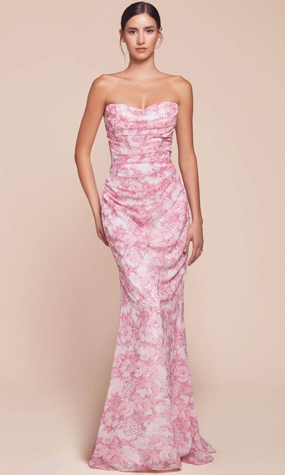 Turn yourself into a head-turning sensation by slipping into this utterly fetching Ladivine 7445 evening dress. Everyone will fall for your charm as you wear this dress on your special occasion, showcasing an alluring strapless scoop neckline on a figure-flattering bodice. Making it more endearing are the floral print designs all over this creation. It also showcases a fabulous sweep train on the floor-length sheath skirt, elevating the overall glamour of this attire. Make an extraordinary statement when you walk in this classy Ladivine 7445 masterpiece. Models are wearing Blue, and Rose colors.