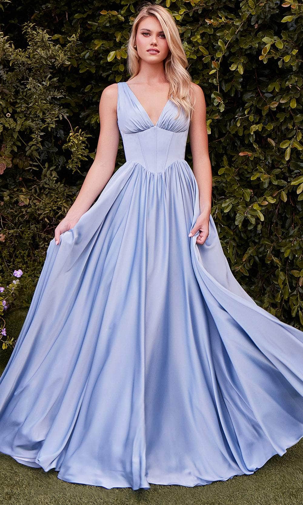 Every detail of this Ladivine 7447 evening dress is dripping with faultless charm! Enchant everyone around you while wearing this dress that captivates with its endearing V-neckline on a fitted bodice, also featuring Basque waistline. It reveals a classy mid-open back that is enclosed with lace for a graceful finish. It also exhibits ruching effects which makes this floor-length A-line attire look extra appealing. Be the loveliest of them all wearing this Ladivine 7447 masterpiece. Models are wearing Lt Yellow, Mauve, Navy, Paris Blue, and Sage colors.