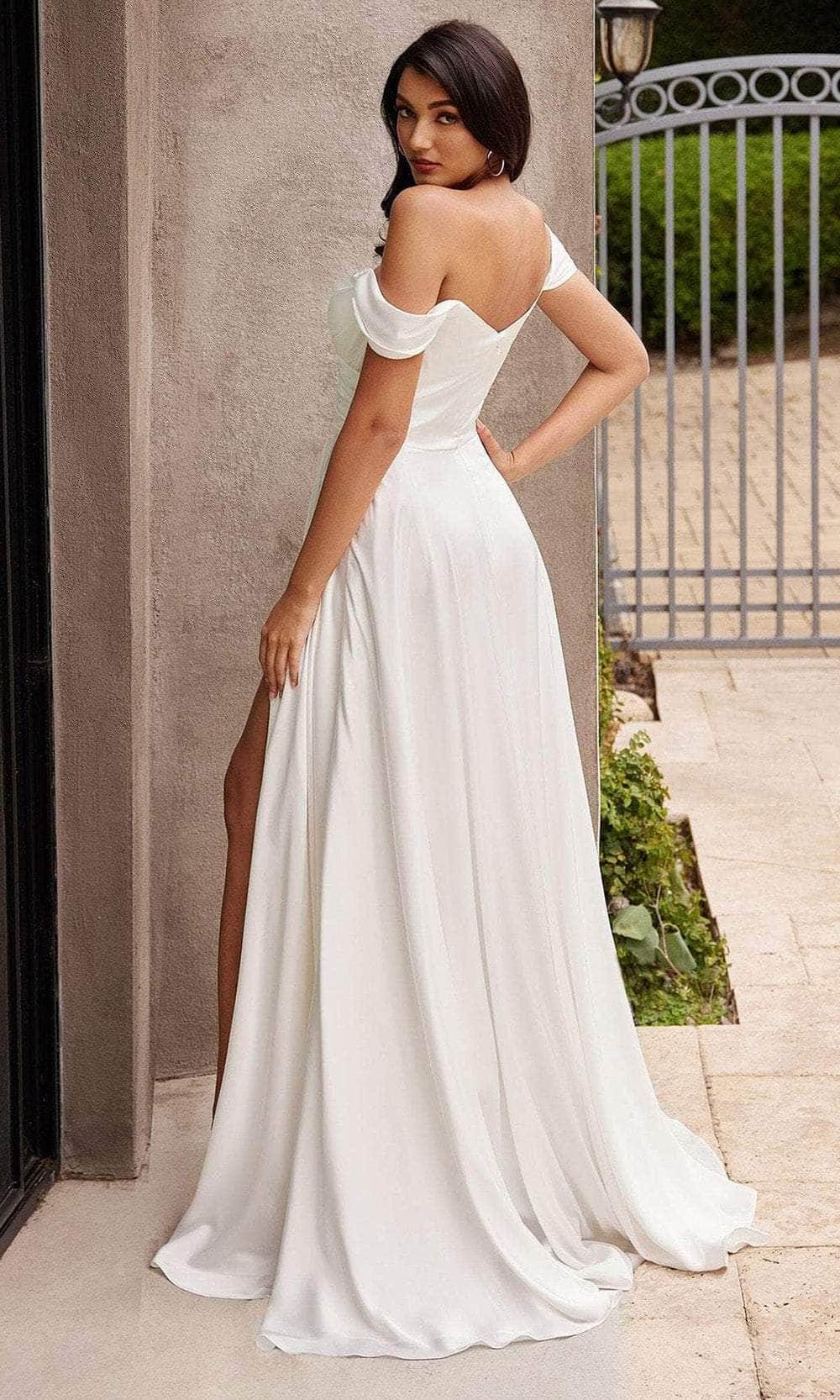 Infuse your bridal ensemble with romance and allure with Ladivine by Cinderella Divine 7493WC. Crafted from satin, this wedding dress exudes elegance and sophistication. The gathered bodice and sweetheart detail create a flattering silhouette, while off-the-shoulder straps add a hint of drama to the look. Featuring a midrise back and concealed zipper closure, the gown ensures a seamless fit. A high slit opens the ethereal skirt, gracefully cascading into a floor-length hemline, perfect for your rehearsal dinner or wedding exit. Elevate your special day with the timeless charm and sexiness of Ladivine by Cinderella Divine 7493WC. Model is wearing the Off White color.