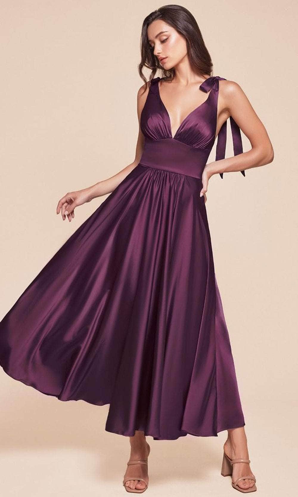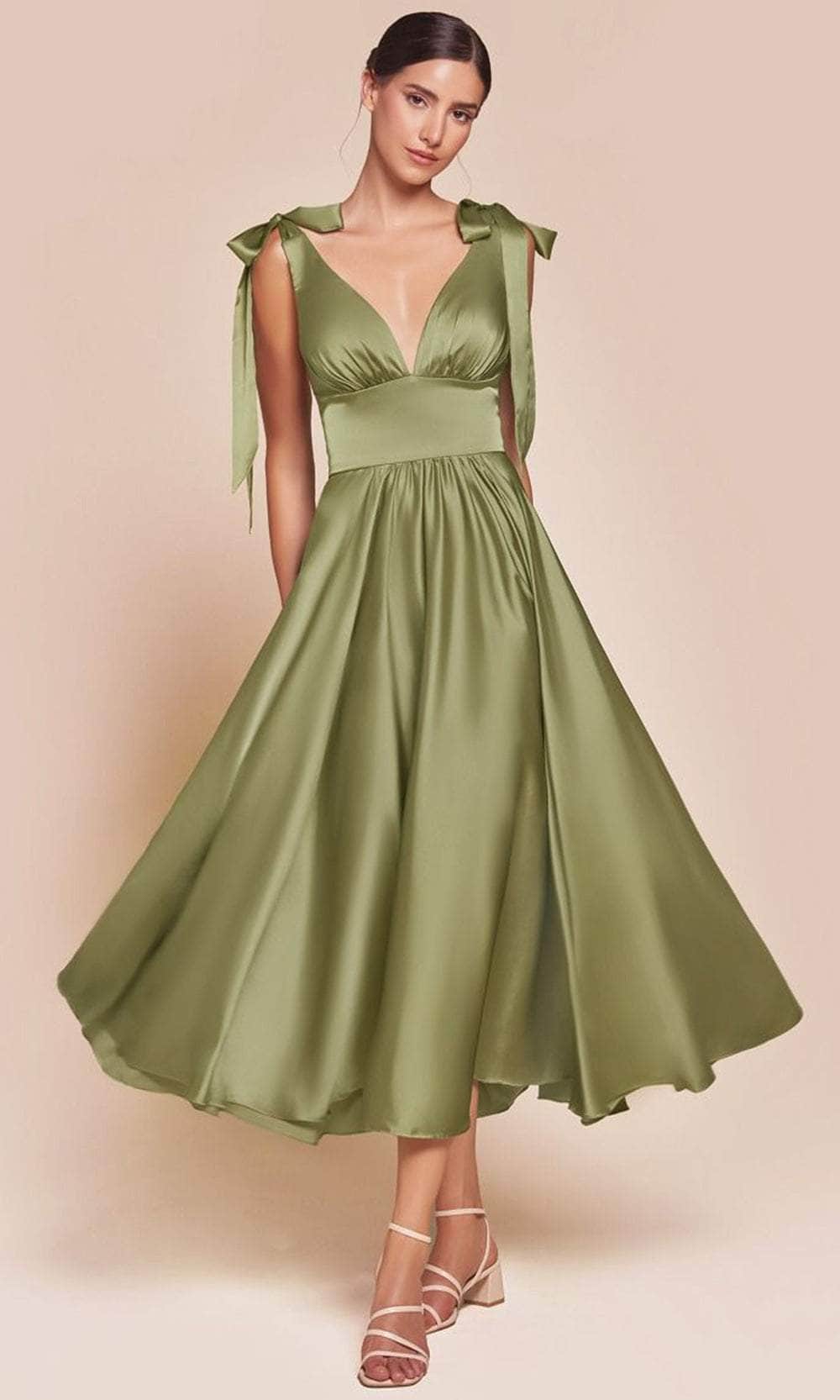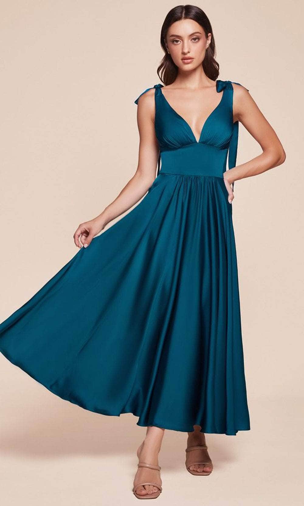 Make a lasting impression in a Ladivine 7499 dress, designed for those who value exquisite craftsmanship. This stunning dress features tailored lines on luxurious satin fabric, creating a refined and graceful silhouette. The tie shoulder straps and V-neckline offer a timeless, feminine appeal, while the gathered waistline enhances its elegant charm. With a soft satin fabric that promises comfort and a fitted bodice flowing into a flattering A-line skirt, this dress embodies effortless sophistication. Finished with a tea-length hem, it's perfect for bridesmaids, wedding guests, or any formal occasion. Embrace elegance in the Ladivine 7499 dress, where beauty and grace converge. Models are wearing the Burgundy, Dusty Blue, Eggplant, Emerald, English Violet, French Navy, Greenery, and Sage colors.
