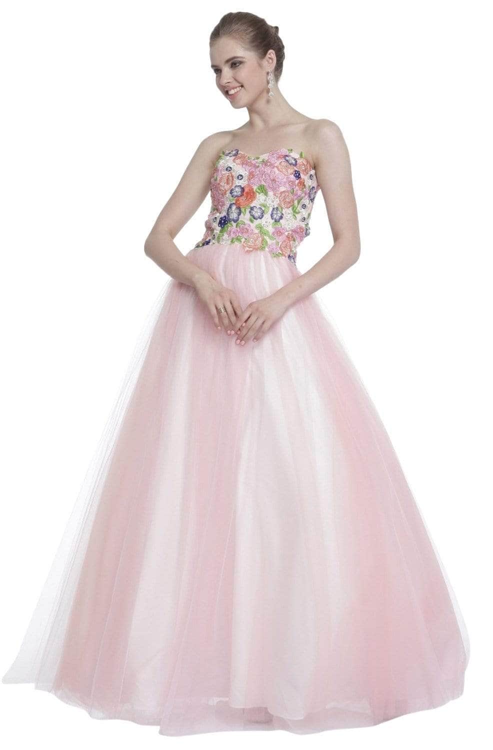Give a master class on how to be perfectly beautiful once you appear in this gracefully crafted Ladivine 7637 evening gown. The fitted bodice is adorned with lovely floral lace with bead accents and crowned with a strapless sweetheart neckline. The skirt is designed in a ballgown silhouette with fabulous pleats that cascade to a full length hemline. Set the mood on your next special occasion with this sparkling floral lace from Ladivine 7637 creation. Model is wearing the Blush color.