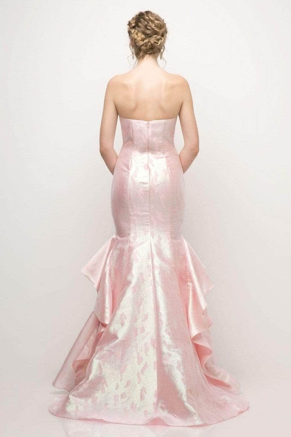 | Details: | Strapless, Jacquard, Plunging Notch, Illusion Modesty Inset, Mid-Open Back, Back Zipper Closure, Layered Skirt Cascade, Sweep Train |