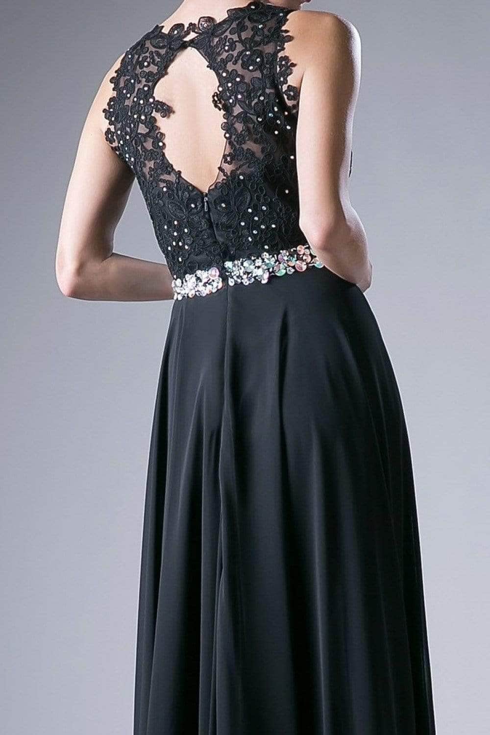 Be the epitome of timeless grace as you exude beauty in this beautiful LaDivine B1601 long gown. This magnificent design is stunningly wrapped in waves of soft chiffon over a seam-sculpted, sleeveless lace bodice with sparkling accents. It also features a full back with a keyhole cutout. The A-line skirt flutters lightly down to a full-length hemline while being surrounded by a multicolored beaded band at the natural waist. You will enjoy spinning around in this gorgeously portrayed LaDivine B1601 long special occasion dress. The models are wearing Black, Champagne, Mint, Silver, and Blue colors.