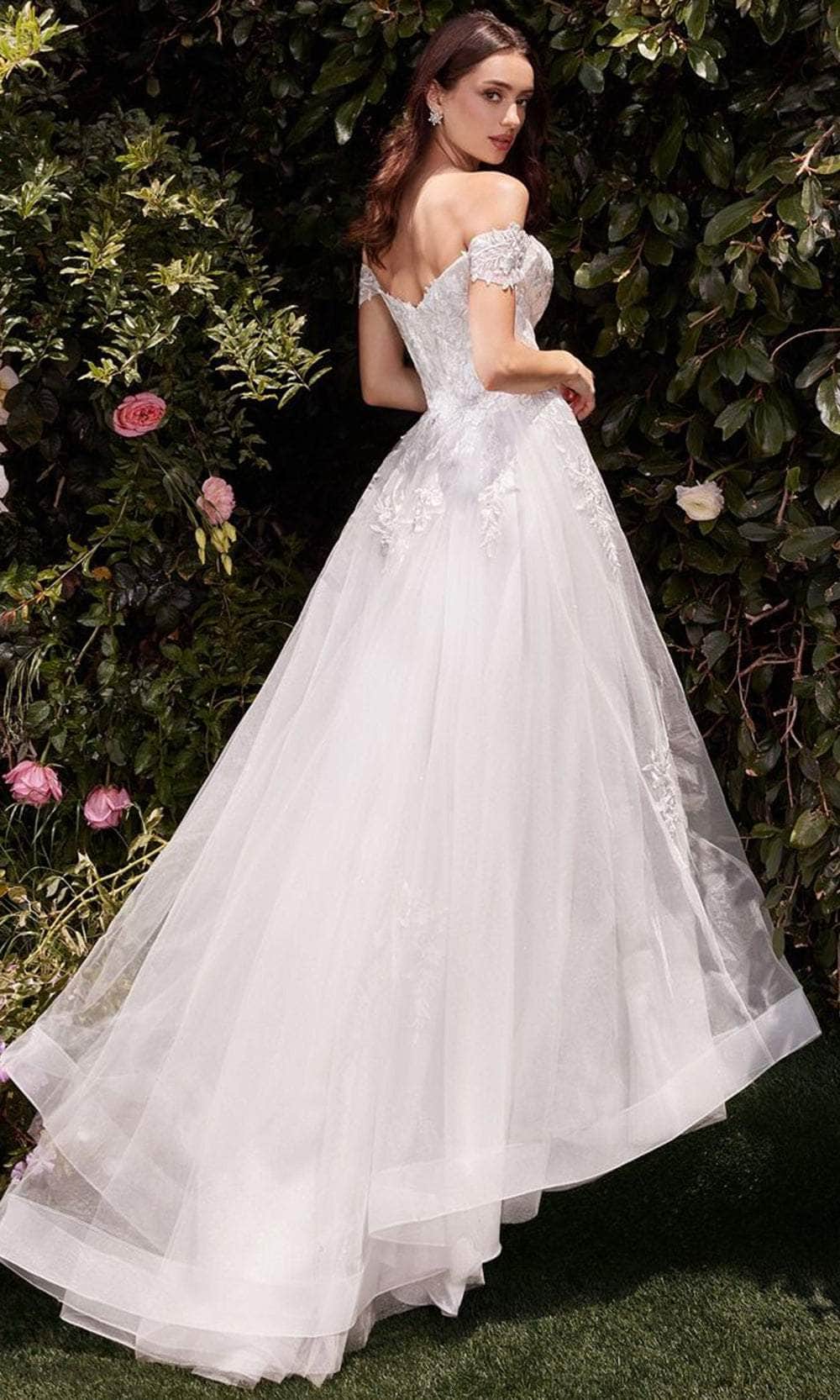 Capture the glamour as you walk on this stunning gorgeous Ladivine C159W bridal dress. You will look immaculately gorgeous when you show up wearing this dress which showcases an endearing off-shoulder neckline on a floral-embroidered bodice. It also reveals an endearing mid-open back that is enclosed by a zipper for a polished finish. Additionally, this dress displays an enticing slit on the majestic A-line silhouette skirt that is evident down the floor-length. Make it your moment to stand out wearing this Ladivine C159W masterpiece. Model is wearing Off White color.