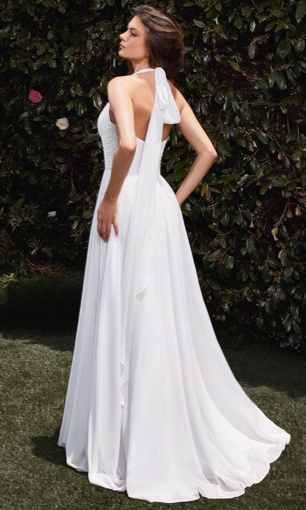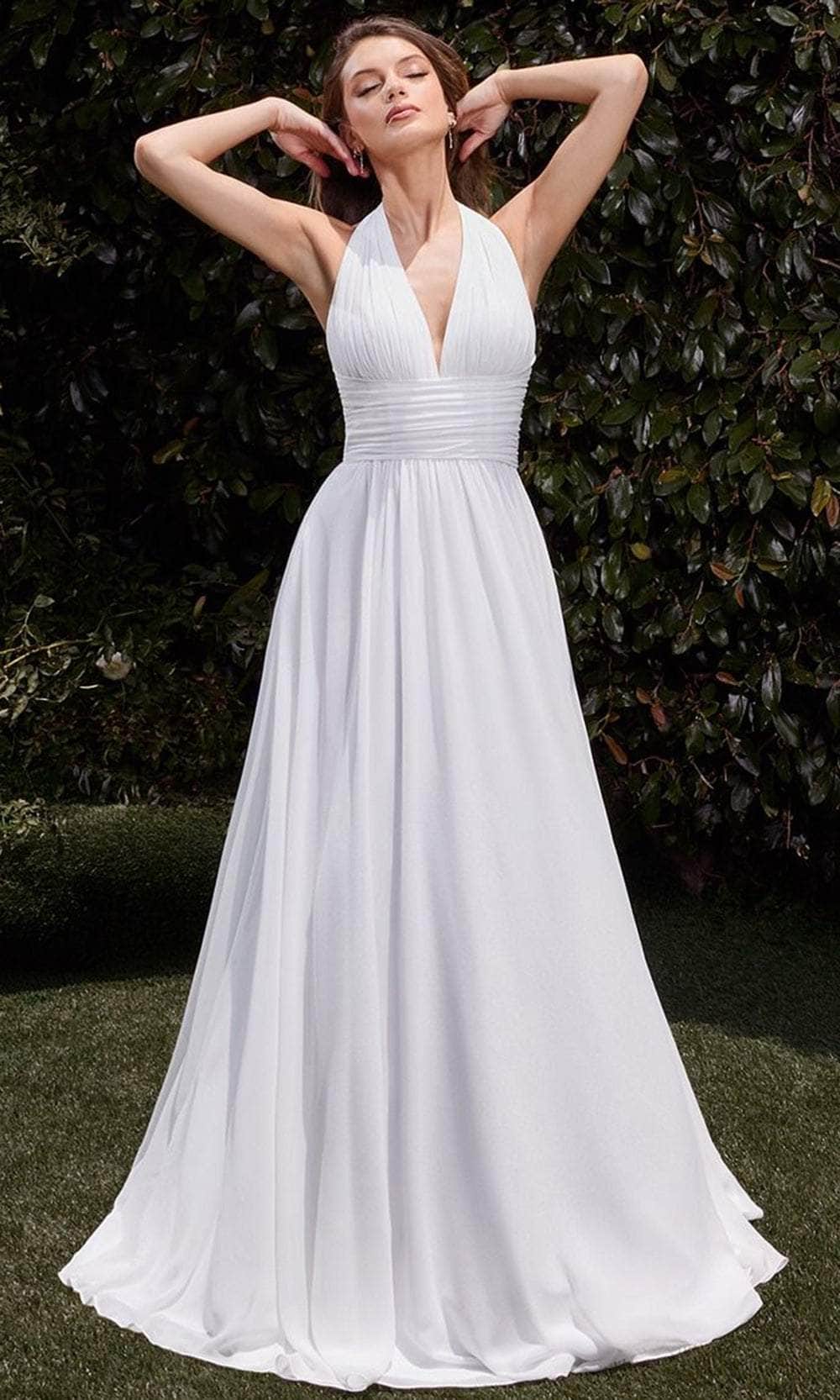 Exude timeless beauty with this highly sophisticated Ladivine CD372W bridal dress. You are sure to own the night with your divine beauty as you wear this dress, featuring an endearing halter neckline on a fitted and sleeveless, ruched bodice, complemented by an empire waistline which makes this attire look more appealing. Additionally, this attire also reveals a captivating mid-open back as well as a classy A-line silhouette that is evident down the floor length. Get glam in this fabulous Ladivine CD372W masterpiece. Model is wearing Off White color.