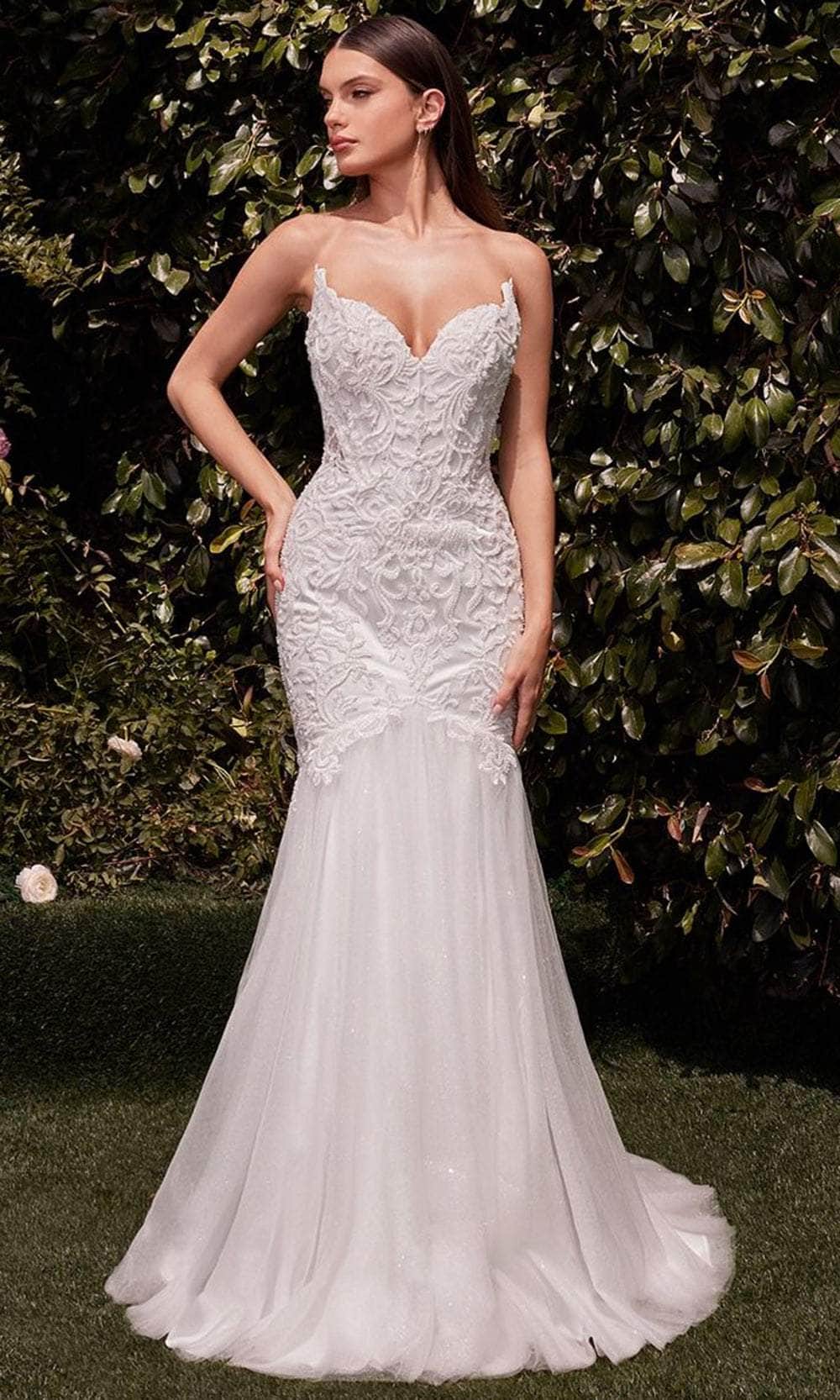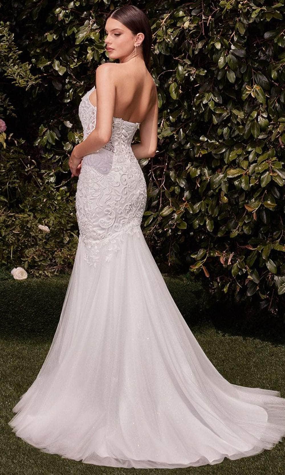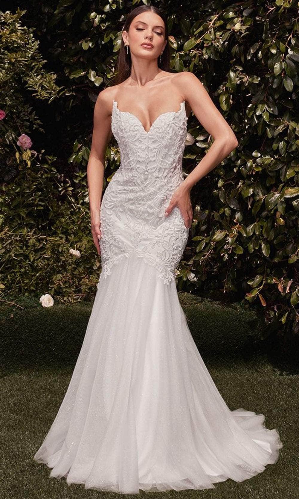 Create a perfect evening wearing this elegant Ladivine CDS482W bridal dress. Make them gather for your beauty as you wear this attire which showcases an endearing strapless sweetheart neckline on a fitted bodice. It also reveals a mid-open back that is enclosed by a lace for a graceful finish. Additionally, the top is wonderfully designed with appliques and embellishments, while the simple yet eye-catching mermaid dress showcases a fabulous sweep train. Show your sophisticated sense of style in this Ladivine CDS482W masterpiece. Model is wearing Off White color.
