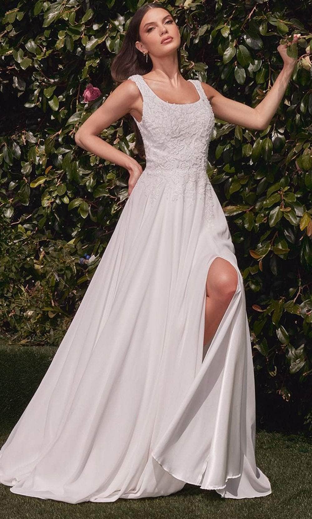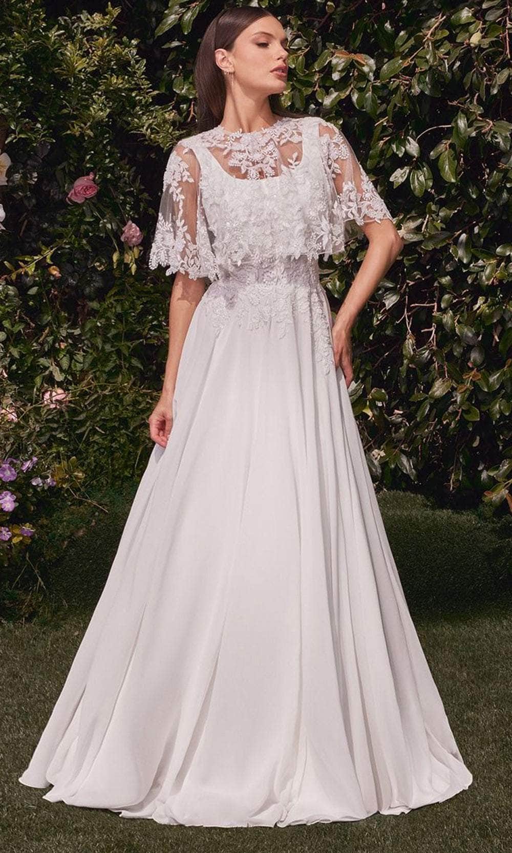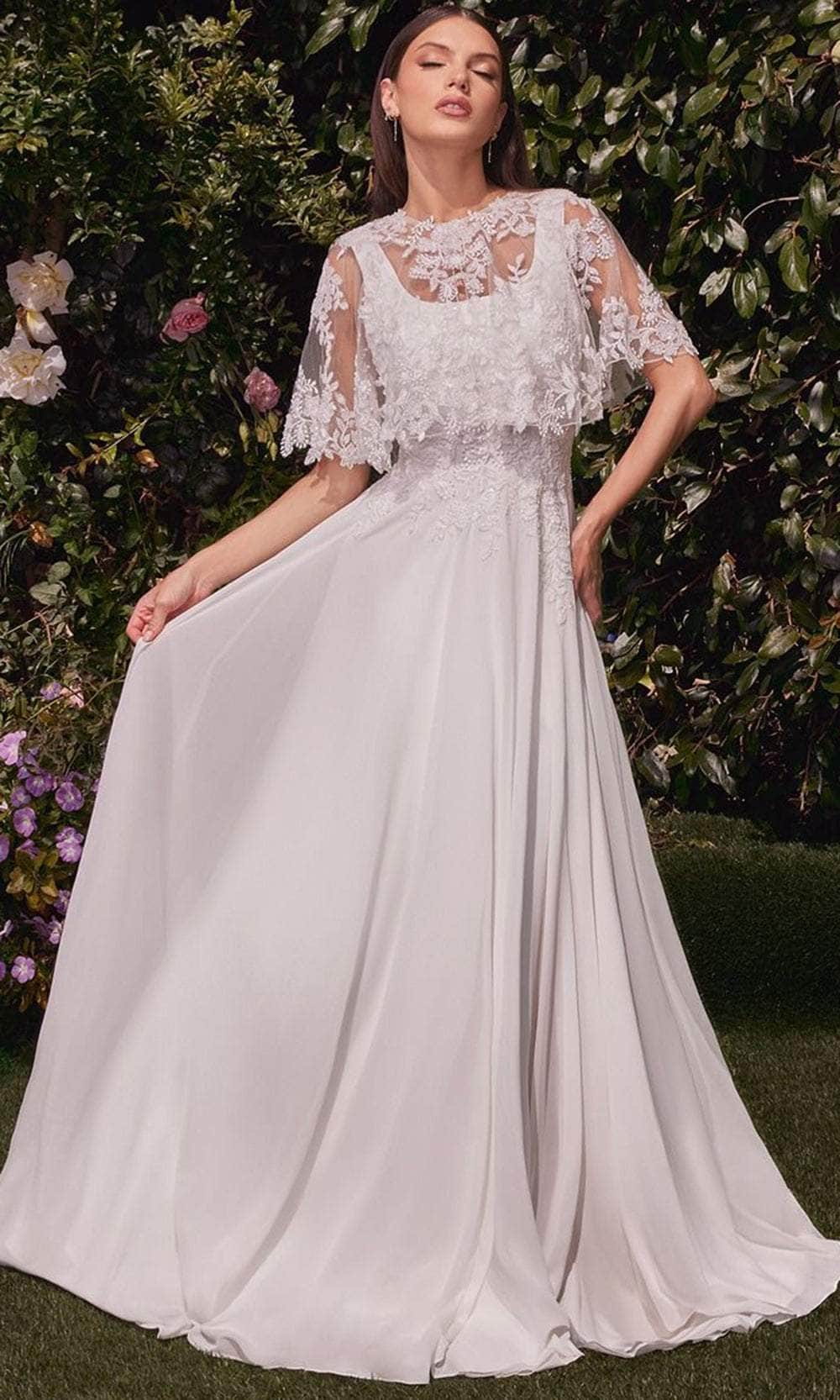 Mesmerize the crowd with your sophisticated flair in this Ladivine CDS503W bridal dress. All will be head over heels for how classy you look with this attire which showcases an endearing scoop neckline on a fitted and sleeveless bodice, complemented by a detachable illusion cape. This dress also reveals a classy mid-open scoop back that is secured by a zipper for a refined finish. The top is designed with beads in a floral style, while the skirt displays an A-line silhouette that is evident down to the floor length. Look immaculately gorgeous in Ladivine CDS503W masterpiece. Model is wearing Off White color.