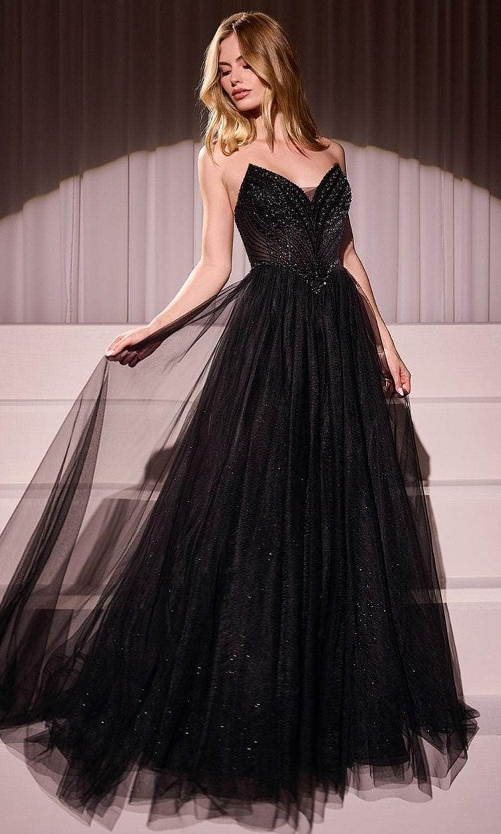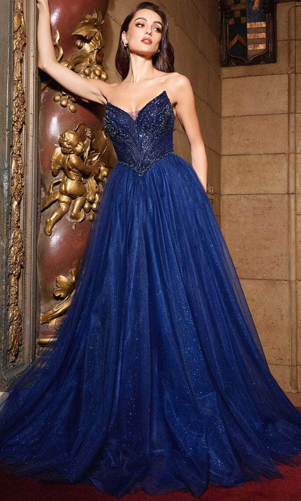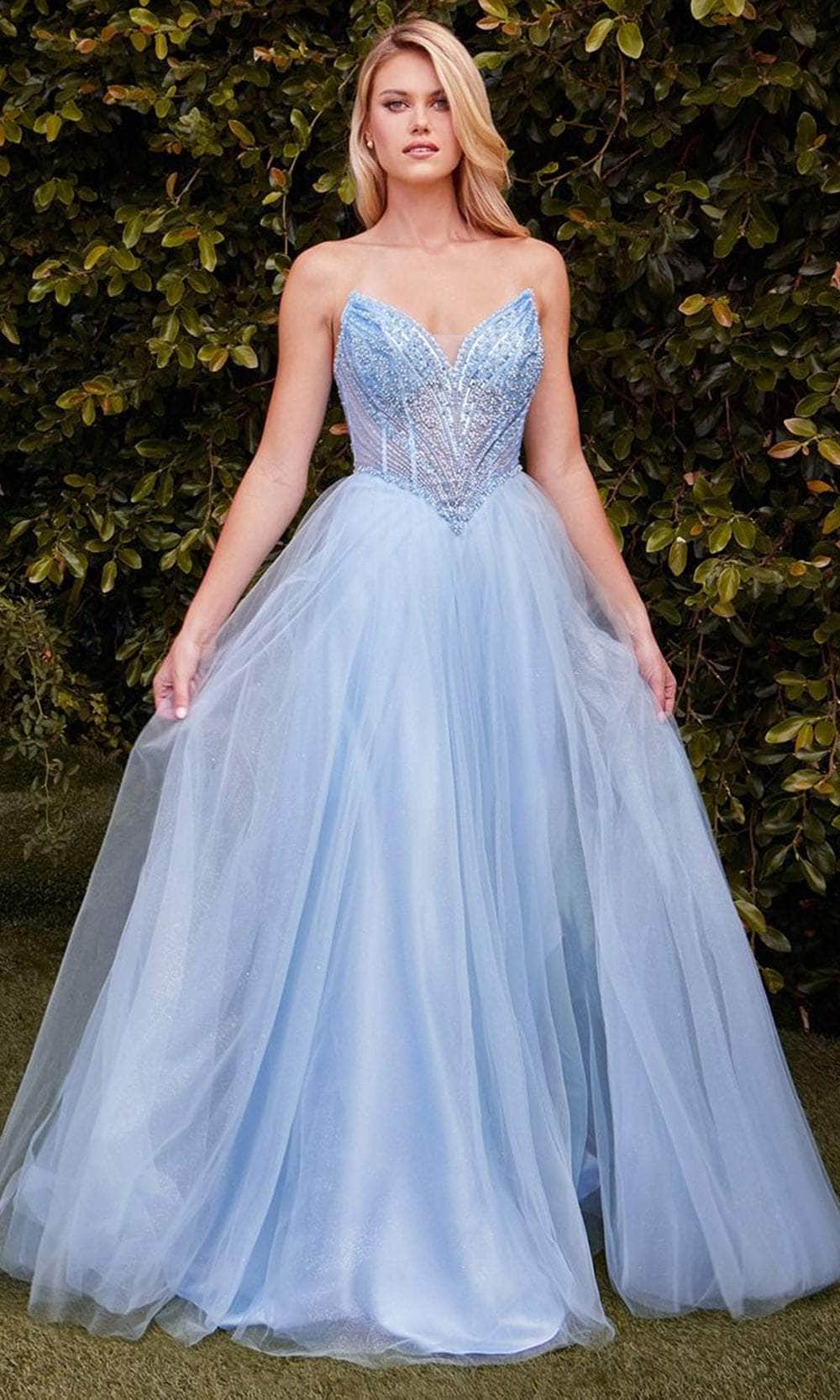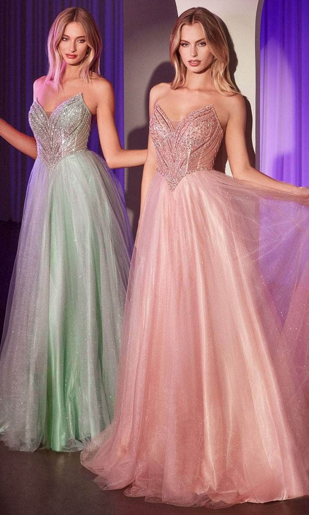 Turn heads and leave a lasting impression in the Ladivine CC415 gown, a celebration of timeless elegance. Meticulously crafted with luxurious fabric and lining, this breathtaking A-line dress is designed to dazzle. The strapless pointed neckline features intricate beaded embellishments that shimmer effortlessly in the light. The fitted bodice, enhanced by a princess waistline, accentuates your natural curves, while the lace-up corset back ensures a tailored and comfortable fit. Perfect for prom, homecoming, or any formal occasion, this layered tulle masterpiece beautifully combines grace and charm. Embrace luxury with the Ladivine CC415 gown, ideal for the sophisticated woman. Models are wearing Black, Blush, Emerald, Lavender, Light Blue, Mocha Gold, Navy, Red, and Sage colors.