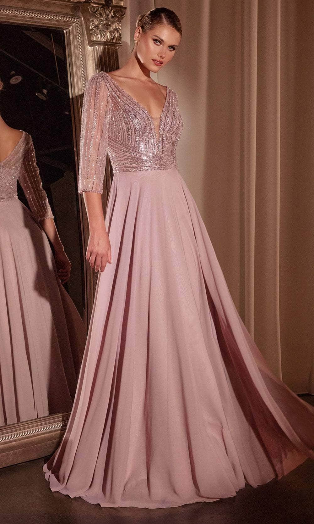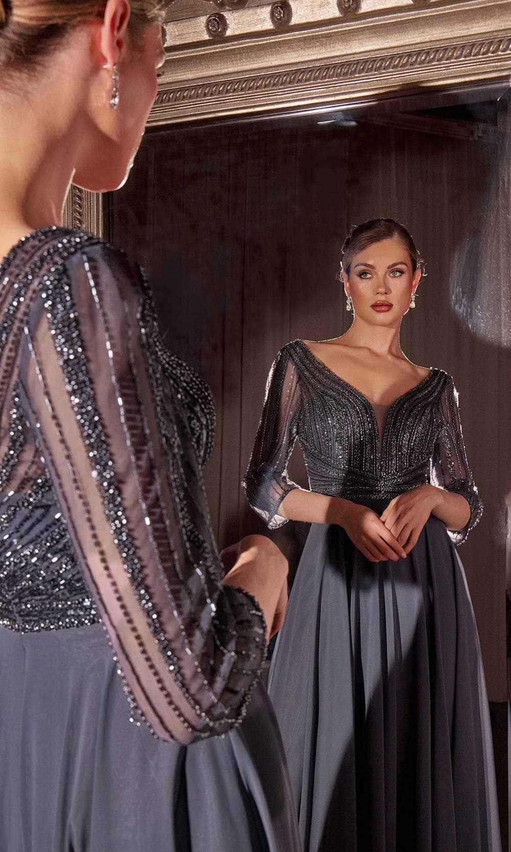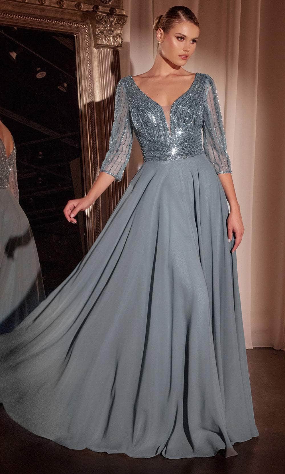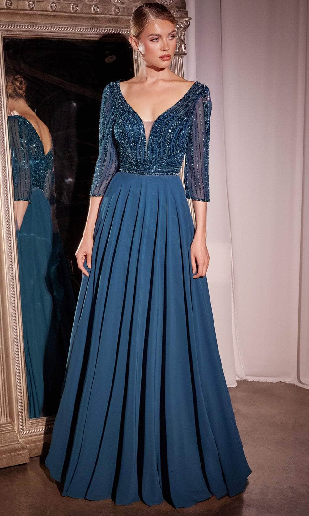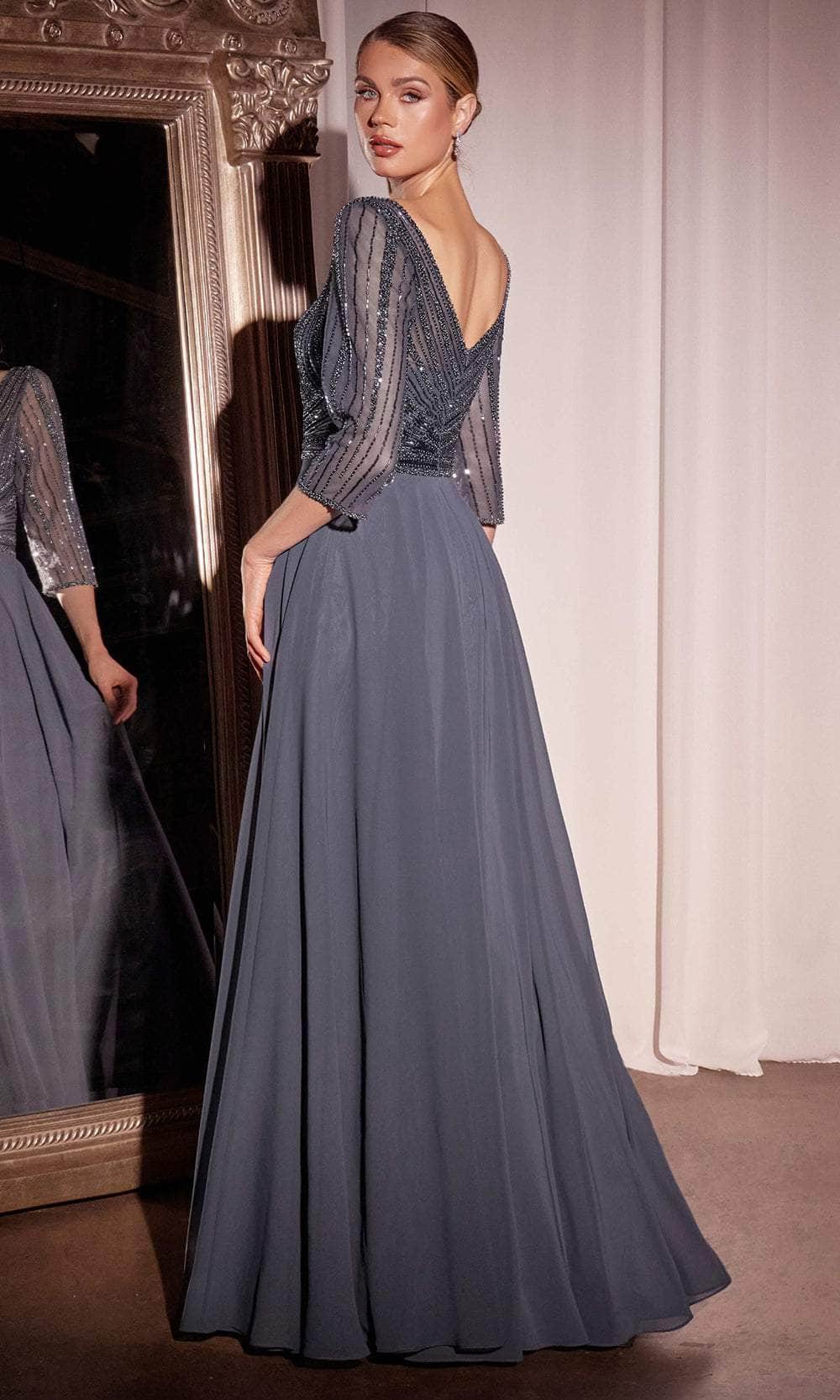Look and feel glamorous in this simple yet eye-catching Ladivine CC446 evening dress. You will be admired be everyone around you as you walk pass them while wearing this dress which features a classy plunging V-neckline, complemented by illusion three quarter sleeves. The top reveals a beaded design as well as a sophisticated mid-open V back with zipper enclosure, while the simple floor-length skirt exhibits an A-line silhouette. Make it a night to remember with this Ladivine CC446 creation. Models are wearing Emerald, English Violet, Indigo Grey, Mauve, Peacock, and Smoky Blue colors.