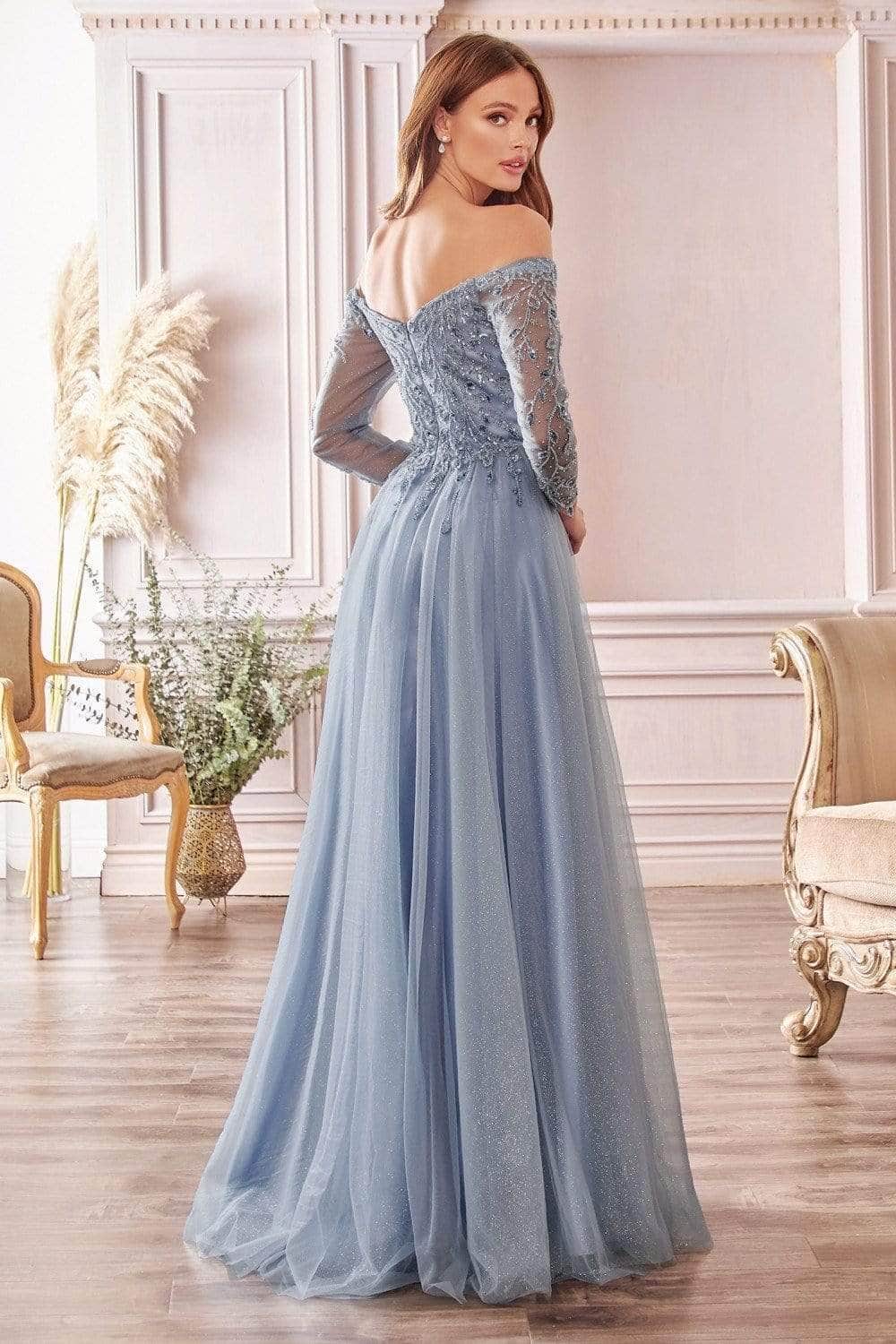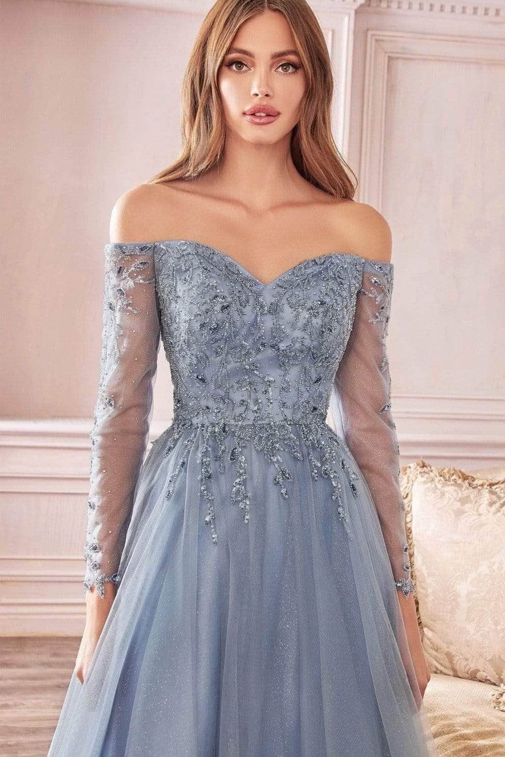 Dazzle in Ladivine CD0172's ethereal dress and make a statement with your style. This stunning beauty is topped with a picture-perfect off-shoulder sweetheart neckline, sheer long sleeves, and an equally classy mid-open back. The gown is made of shimmering glitter tulle with a tonal lining. It features a lavishly adorned bodice with intricate beadwork perfectly matched with a softly gathered sheer skirt that opens in a full-length A-line silhouette. This Ladivine CD0172 is an ideal choice for making an elegant statement on any special occasion. With its sophisticated style, it will keep you looking your best. Models are wearing the Smoky Blue and Rose Gold colors.