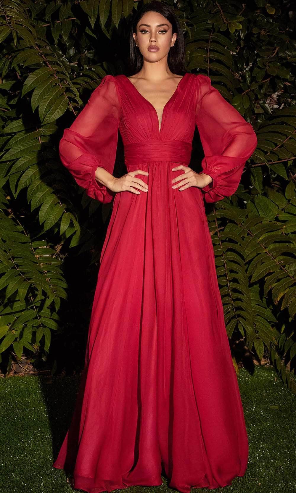 Grace the ballroom with your presence wearing this stunning Ladivine CD0192 creation. This piece is intricately adorned with fine shirring and has a deep v-neckline framed by beautiful bishop sleeves. The v-open back is exquisitely textured with ruching and rhymes with the nipped waistband. The A-line skirt flares out into a sweeping train. This is perfect if you want to show less skin but still want to look fashionable. Be mesmerized by the elegant sophistication and charm of this Ladivine CD0192 masterpiece. Models are wearing the Sienna, Smoky Blue, Black, Blossom Pink, Blush, Burgundy, Champagne, Red, Rosewood, Royal colors.