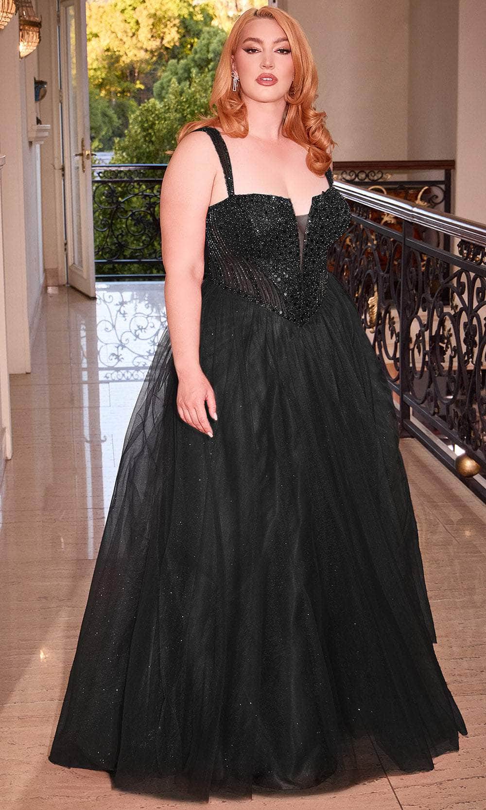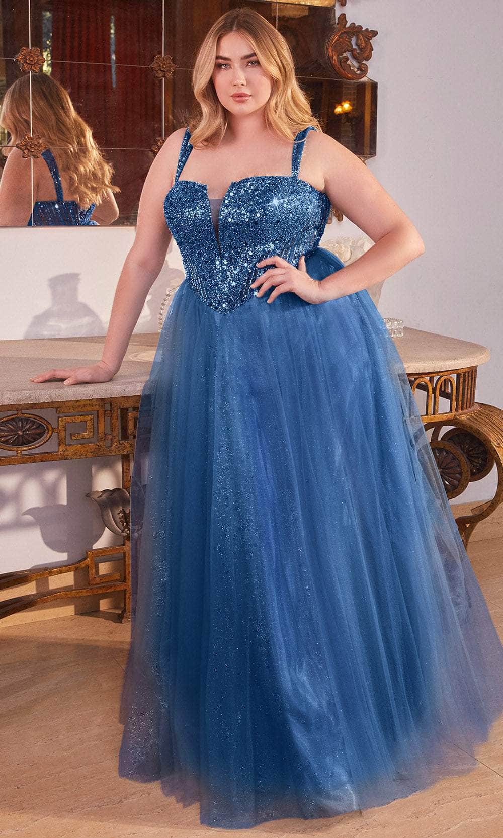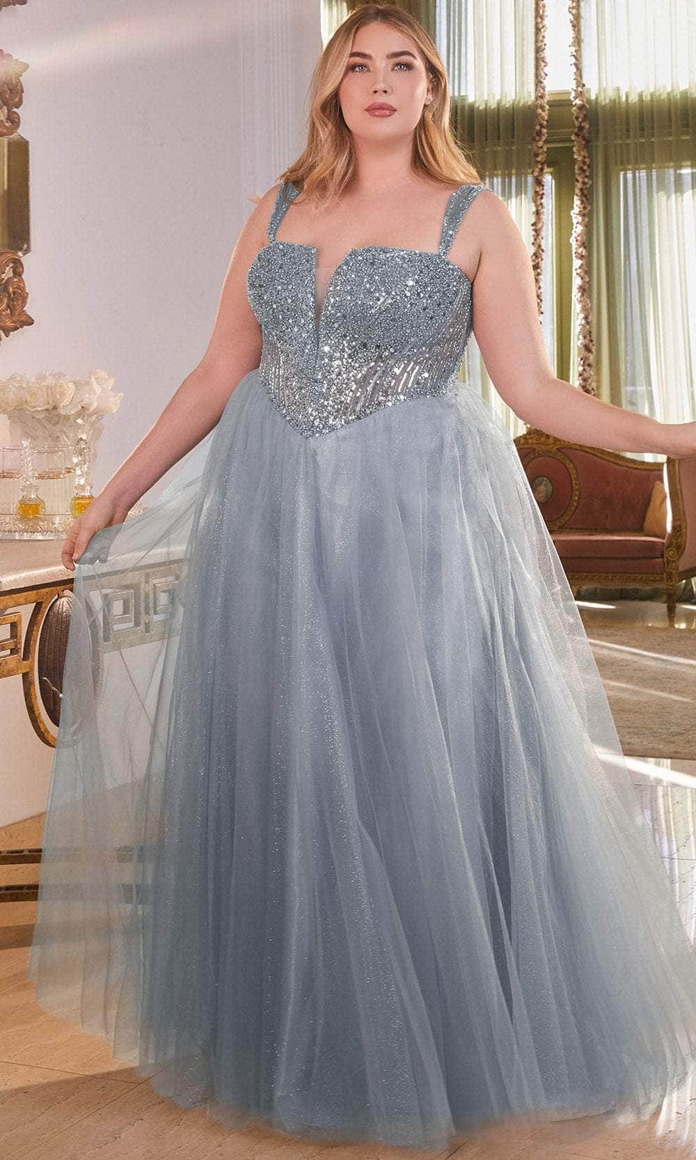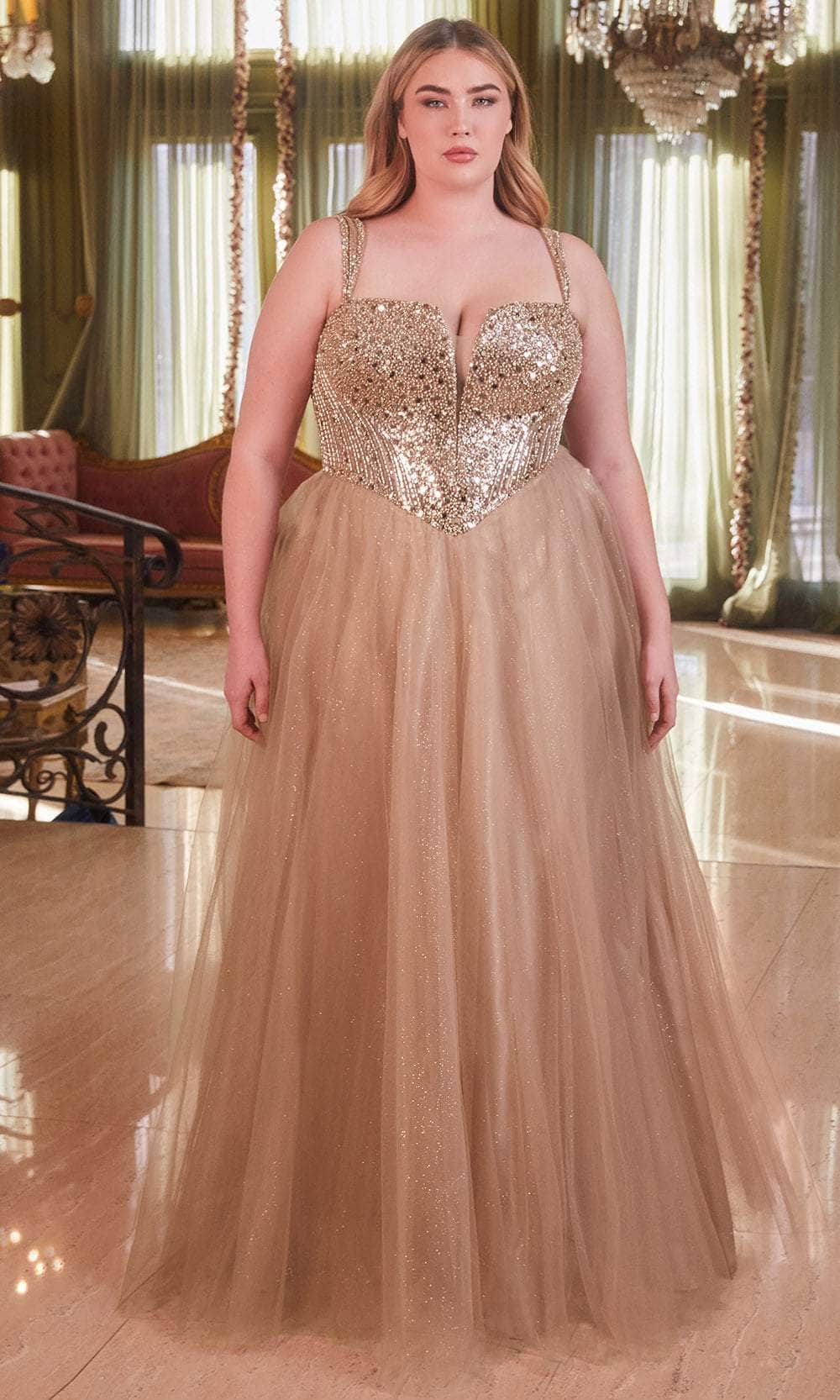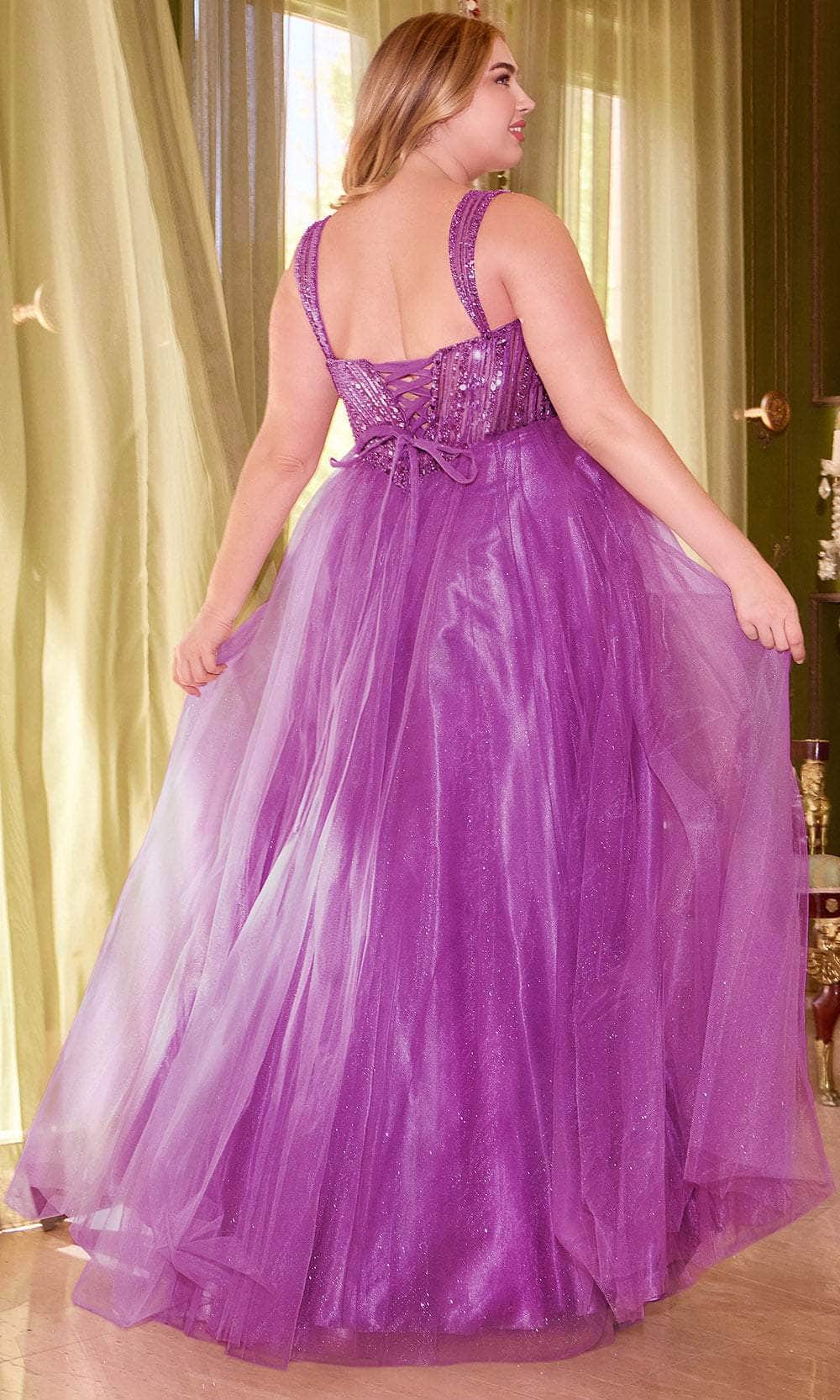 Make a statement at any special event with this Ladivine CD0217 ensemble. This strapless gown is embellished with intricate beading and sequins on the top bodice to dazzle the crowd with every sparkle. Features are the plunging v-neckline, basque waist, and a sultry mid-open back with lace-up design. Crafted with glitter tulle, the layered skirt flares an A-line silhouette that gracefully flatters all body types and ends with a majestic sweeping train. You are a breath of fresh air in this dreamy Ladivine CD0217 creation.