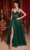 Get ready to steal the show in this Ladivine CD0234 masterpiece. The lace applique and elaborate beadwork on the illusion corset boning bodice create a breathtaking look that exudes grace. It features thin straps that frame your shoulder, with a sweetheart neckline and corset lace-up back. The glitter skirt flares out an A-line silhouette that cascades to the sweeping train and opens a high leg slit that adds a hint of allure. You will definitely make a statement on every occasion in Ladivine CD0234 creation. Models are wearing Emerald, English Violet, Mocha Gold, Red, Smoky Blue, Rose Gold, and Lt Blue colors.