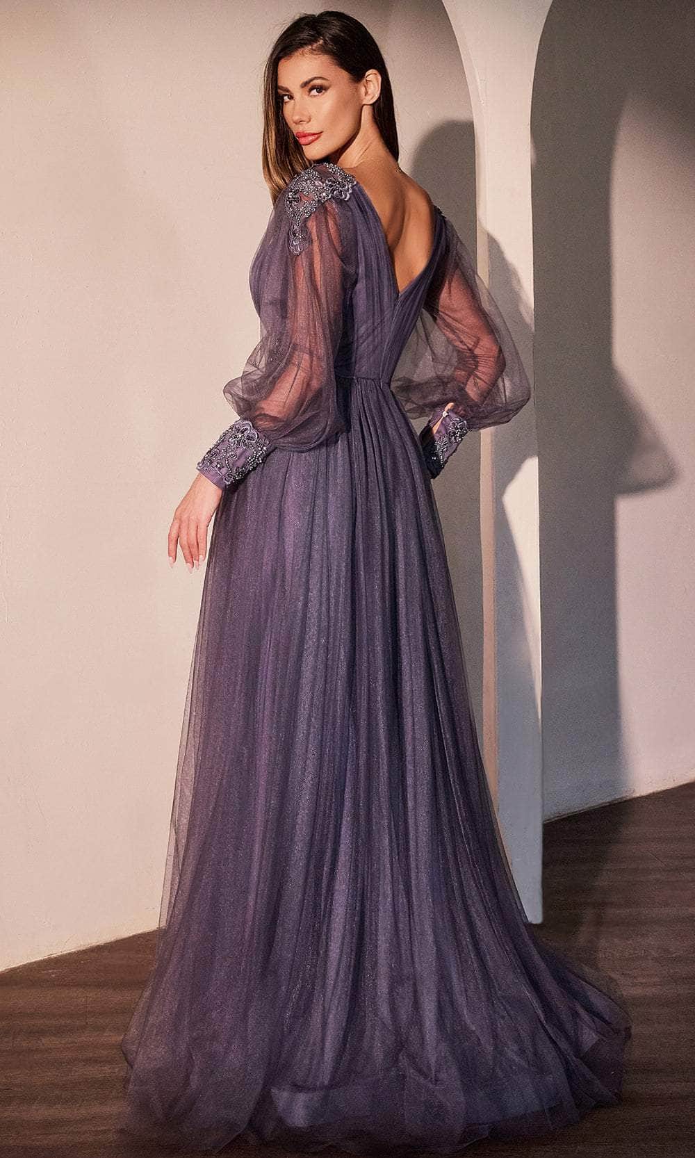 Be fabulous in this Ladivine CD0938 gown, an exquisite creation that radiates sophistication and grace. This elegant A-line dress features a graceful V-neckline and long sleeves, offering a refined and modest look. The beautifully layered tulle and lace applique skirt adds a touch of intricate detail and texture, enhancing the gown's overall charm. The structured bodice provides enhanced support, ensuring a comfortable and flattering fit. The flowy A-line skirt allows for ease of movement, making this Ladivine CD0938 perfect for mothers of the bride or any formal occasion where sophistication is key. Model is wearing Smoky Violet color.