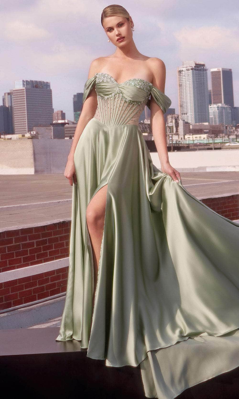 Make it a night to remember with this Ladivine CD297 evening dress. This dress will captivate onlookers as it displays an endearing sweetheart neckline with charming detachable off-shoulder straps. The illusion top is beautifully designed with pleats and bead designs, also featuring boning details for added structure. The classy floor-length A-line skirt is also made even more appealing with its high slit. Get ready for everyone to stop and stare when you show up in this Ladivine CD297 masterpiece. Models are wearing Burgundy, Navy, Black, Dusty Rose, Emerald, Lt Yellow, Red, Royal, Sage, and Smoky Blue colors.
