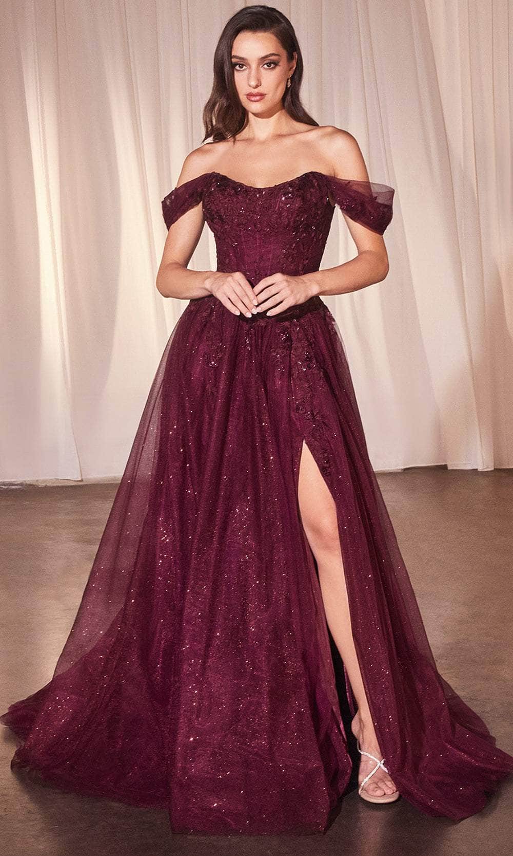 Make a spectacular entrance and become the star of the event in this Ladivine CD799 masterpiece. This outfit is crafted with a corset boning bodice that gives structure and highlights your curves. Features are the scoop neckline paired with beautiful off-shoulder cap sleeves and an open back. It has floral embroidery and shimmering decorations that create an aura of luxury and elegance. The layered skirt cascades elegantly to the floor and forms an A-line silhouette that fits all women curves. A high leg slit in the front adds a daring touch. Step out with confidence and grace in this Ladivine CD799 creation. Models are wearing Greenery, Dusty Blue, and Plum colors.