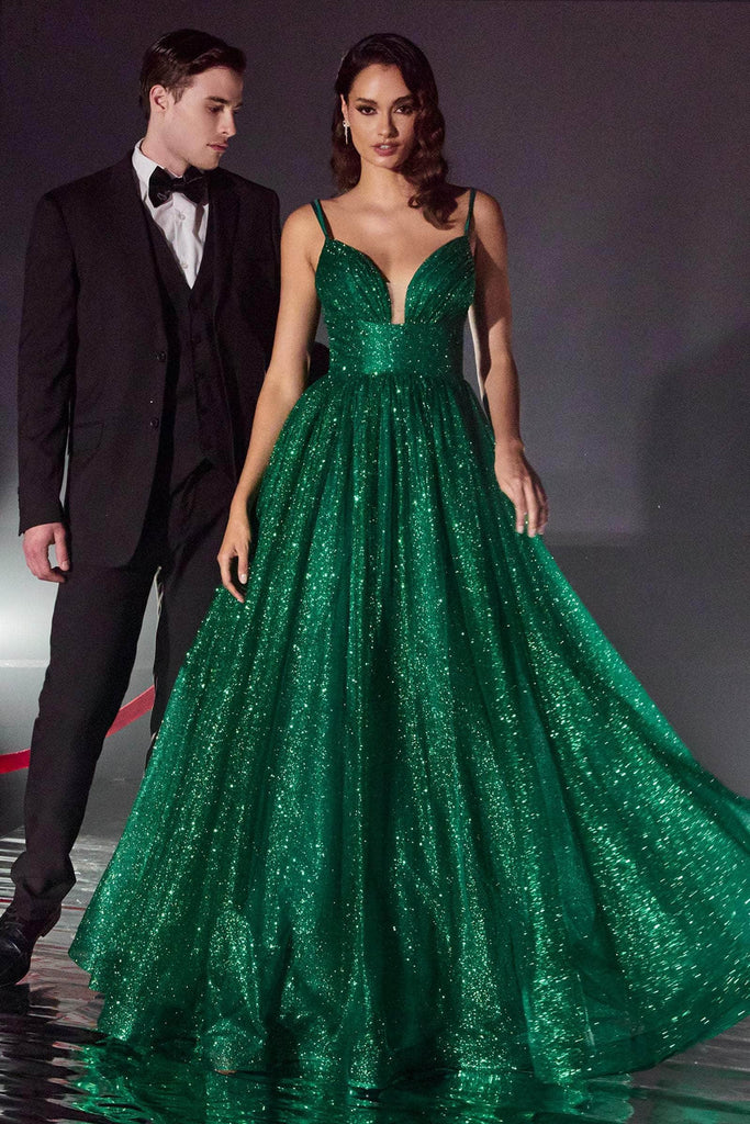 Go for a timeless and sophisticated look wearing this prominent gown by Ladivine CD996. Fascinatingly crafted with a glittered fabric, this sleeveless gown boats a ruched deep sweetheart neckline with sheer inset detail at the bust, a wide waistband and dual spaghetti straps. Along the flattering mid-open back is a corset lace-up tie closure for an adjustable fit. The layered skirt parades a ballgown silhouette which falls to a full length hem and sweeping train. Capture the glamour as you walk on this stunning gorgeous Ladivine CD996 masterpiece. Models are wearing the Black, Emerald, Red, Silver, Fuchsia, and Royal colors.