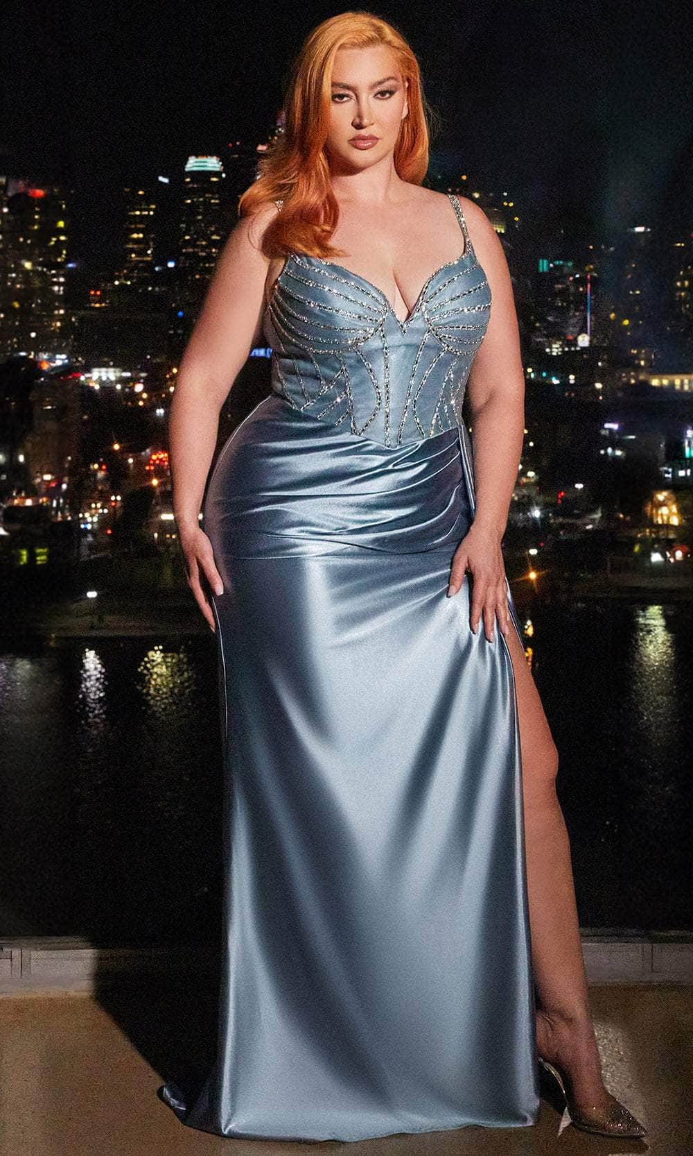 Transform into a glamorous and refined woman with the Ladivine CDS440C creation. Adorned in sparkly beadings and fashioned with satin fabric, the sleeveless gown that will make you feel absolutely comfortable and guarantees a show-stopping entrance. It features a pleated hipline, deep v-neckline and thin shoulder straps that offer snug support. In a sheath silhouette, the skirt dramatically finishes in side sash, alluring gathered booty detail and thigh-high leg slit. For prom or any other special occasion where you want to dance the night away, this Ladivine CDS440C design is a fantastic option. Models are wearing Black, Dusty Blue, Emerald, Midnight, Royal, and Sand colors.