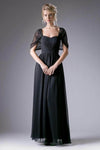 Bloom with beauty and love as you saunter towards forever in this Ladivine CH532 creation. Made with flowy chiffon, this dress features a semi-sweetheart neckline on a ruched bodice. It includes a stunning cape detail that can be customized for an alternating look to fit any occasion. A thin belt wraps the waistline as it flourishes to an A-line skirt with a full-length hemline. Make an extraordinary statement when you walk the red carpet in this classy creation by Ladivine CH532. Models are wearing Burgundy, Black, Navy Blue, Peach, and Silver colors.