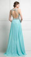 When you wear this elegant formal Ladivine CK78, you'll make a lasting impression at your high-end event. The focal point of this stunning ensemble is a ruched bodice with an illusion bateau neckline and sparkling sequins and beading. The dress's floor-length chiffon A-line skirt has an open back and a sweep train for a romantic look. The Ladivine CK78 is opulent and grandiose at its finest.Model is wearing the Aqua and Mint colors.