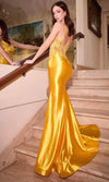 Bring out the goddess in you with Ladivine CM343, adorned in bead embellishments that create a stunning visual on the sleeveless corset bodice. The sweetheart neckline, detailed with pleats, adds a touch of romance. Secured by a center zipper closure at the back, the gown ensures a perfect fit. The floor-length sheath silhouette, featuring ruched details and a daring high slit, accentuates the wearer's figure. Concluding with a graceful train, Ladivine CM343 is an exquisite choice for those seeking a perfect blend of sophistication and allure for any special occasion. Model is wearing Marigold color.