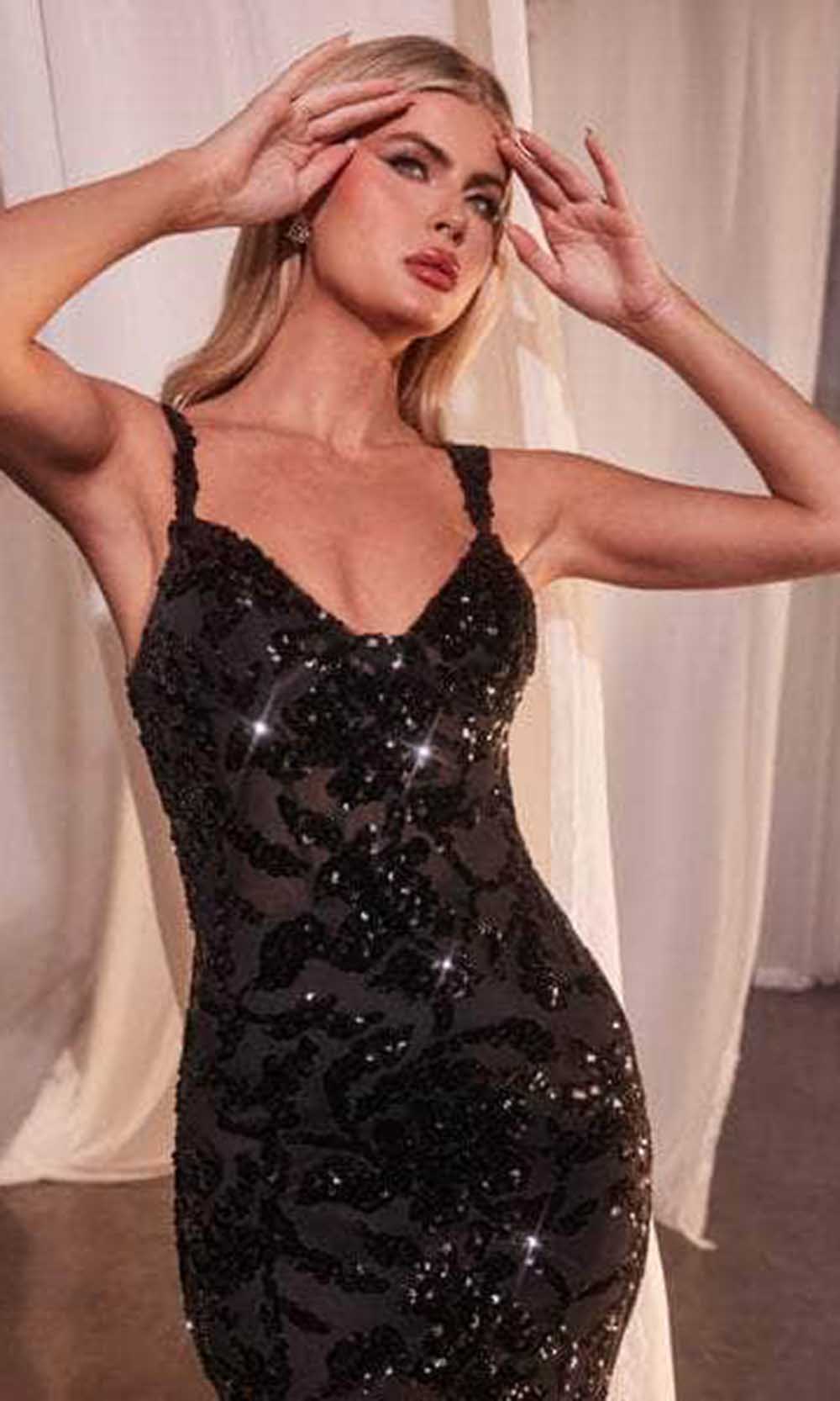 Ladivine CR381 - Sequin Velvet Evening Gown