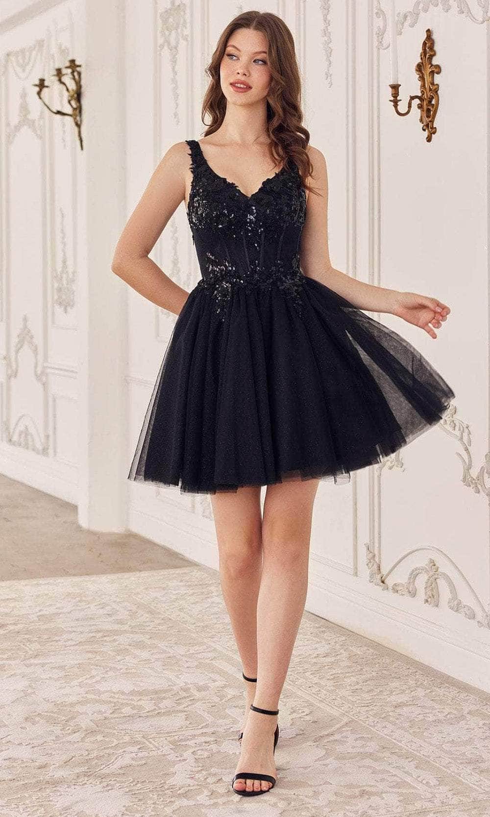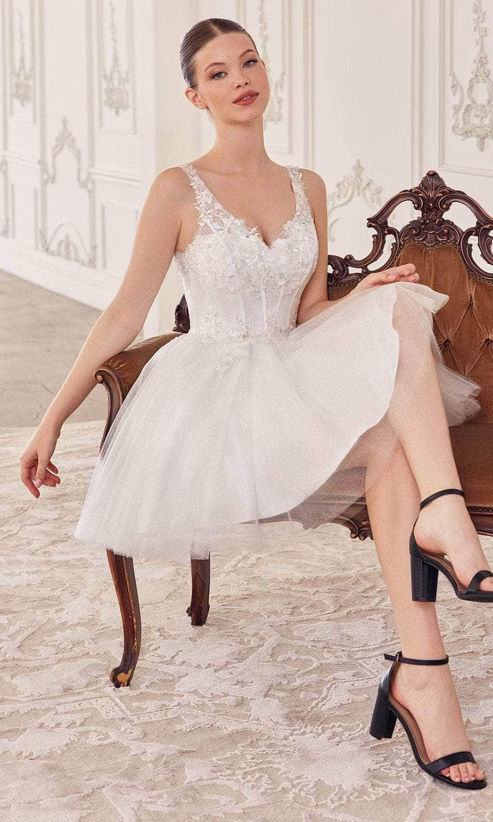 Get ready to steal the spotlight in the Ladivine by Cinderella Divine CY019 sequin applique cocktail dress. This enchanting short sleeveless dress is designed to make you feel absolutely adorable while commanding attention. The A-line glitter skirt adds a touch of sparkle to your every move, ensuring you shine wherever you go! The structured bodice, adorned with embellished lace and a charming V-neckline, exudes sophistication and elegance. With its sleeveless design, this dress offers comfort and freedom of movement, allowing you to dance the night away with grace and style. Complete with a mid open back, it strikes the perfect balance between allure and youthful charm. Unleash your inner starlet in this delightful cocktail dress from Ladivine by Cinderella Divine CY019. Models are wearing the Champagne, Black, Off White, and Silver colors.