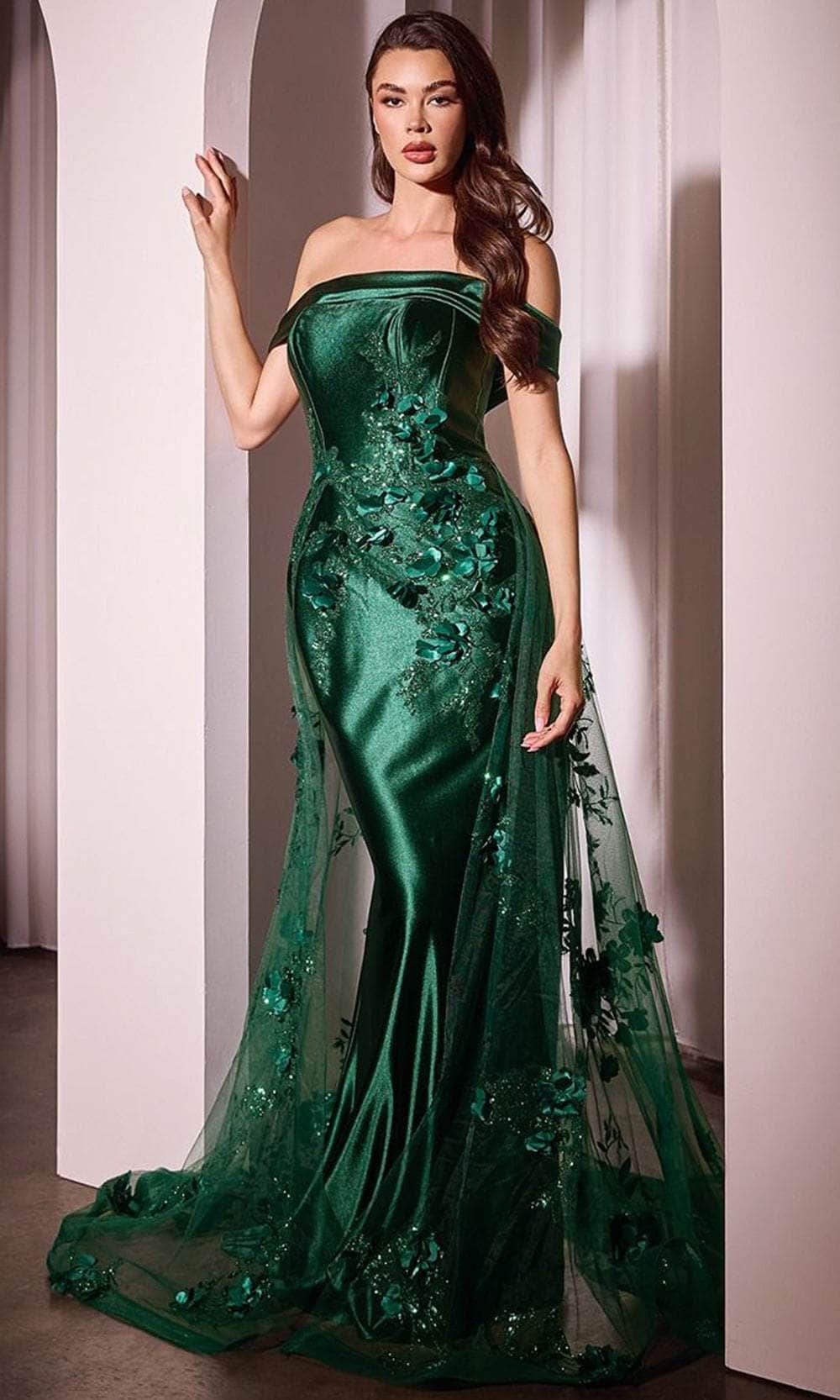Every detail of this Ladivine J876 evening dress is dripping with faultless charm! This dress will help you gather a list of admirers as this showcases an endearing off-shoulder neckline on a fitted bodice. Making them fall even harder for you are the floral appliques and embellishments which heightens the overall visual appeal of this attire. Additionally, this dress also reveals a tulle overskirt on top of the floor-length sheath-silhouette skirt, making you look prettier from any angles. Take their breath away with this stunning Ladivine J876 masterpiece. Models are wearing Emerald, Mauve, and Smoky Blue colors.