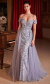 | Details: | Cold-Shoulder, Sheer Insert, Corset Bodice, Embroideries, Sequin Embellishments, Lace-Up Back, Back Zipper Closure, Overskirt, Train |