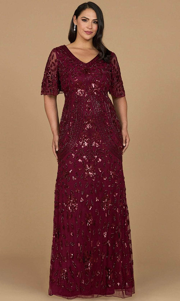 Make a high-fashion statement in the Lara Dresses 28975. Shine with every step in this dress entirely festooned with beads and sequin in an artistic foliage pattern. The seductive V-neckline is matched by a V-shaped back, fastened effortlessly with a concealed zipper. The skirt elegantly skims to the full-length hem and forms a sheath silhouette that enhances your shape. This Lara Dresses 28975 is definitely a worthy addition to your evening wardrobe. Models are wearing Dusty Periwinkle, and Wine colors.