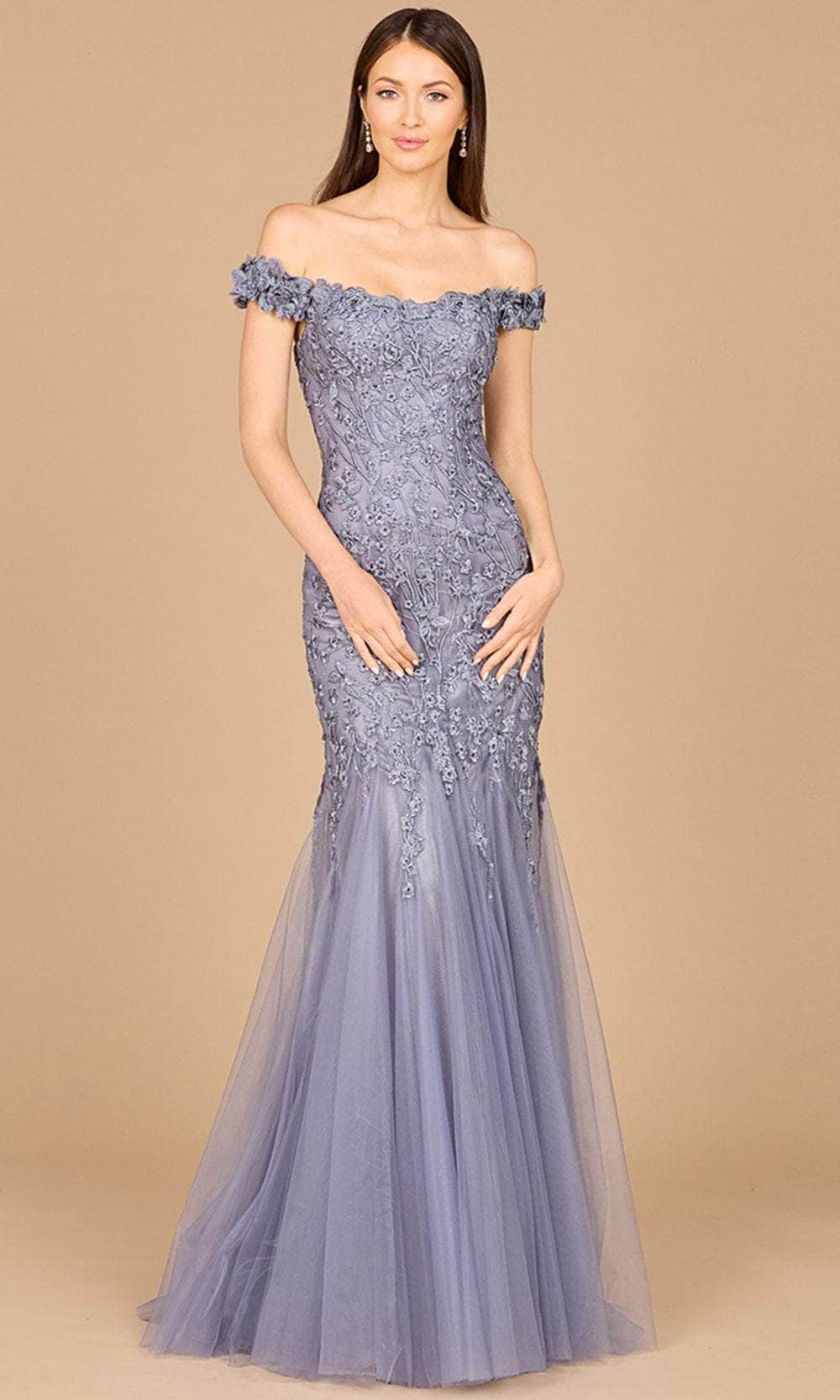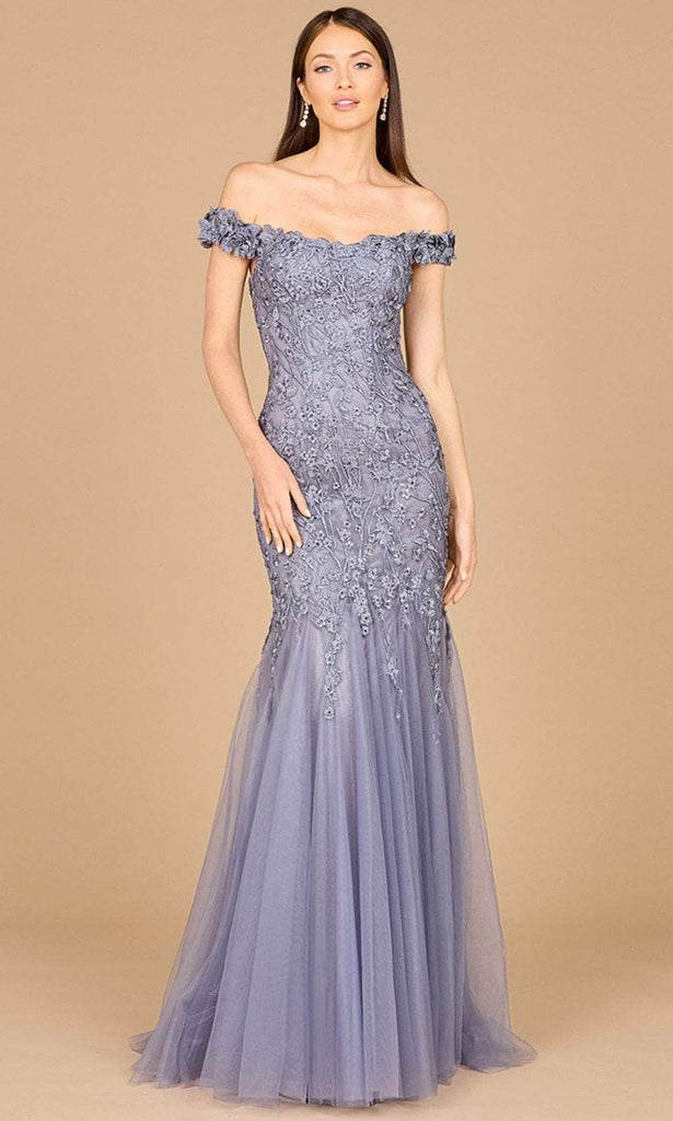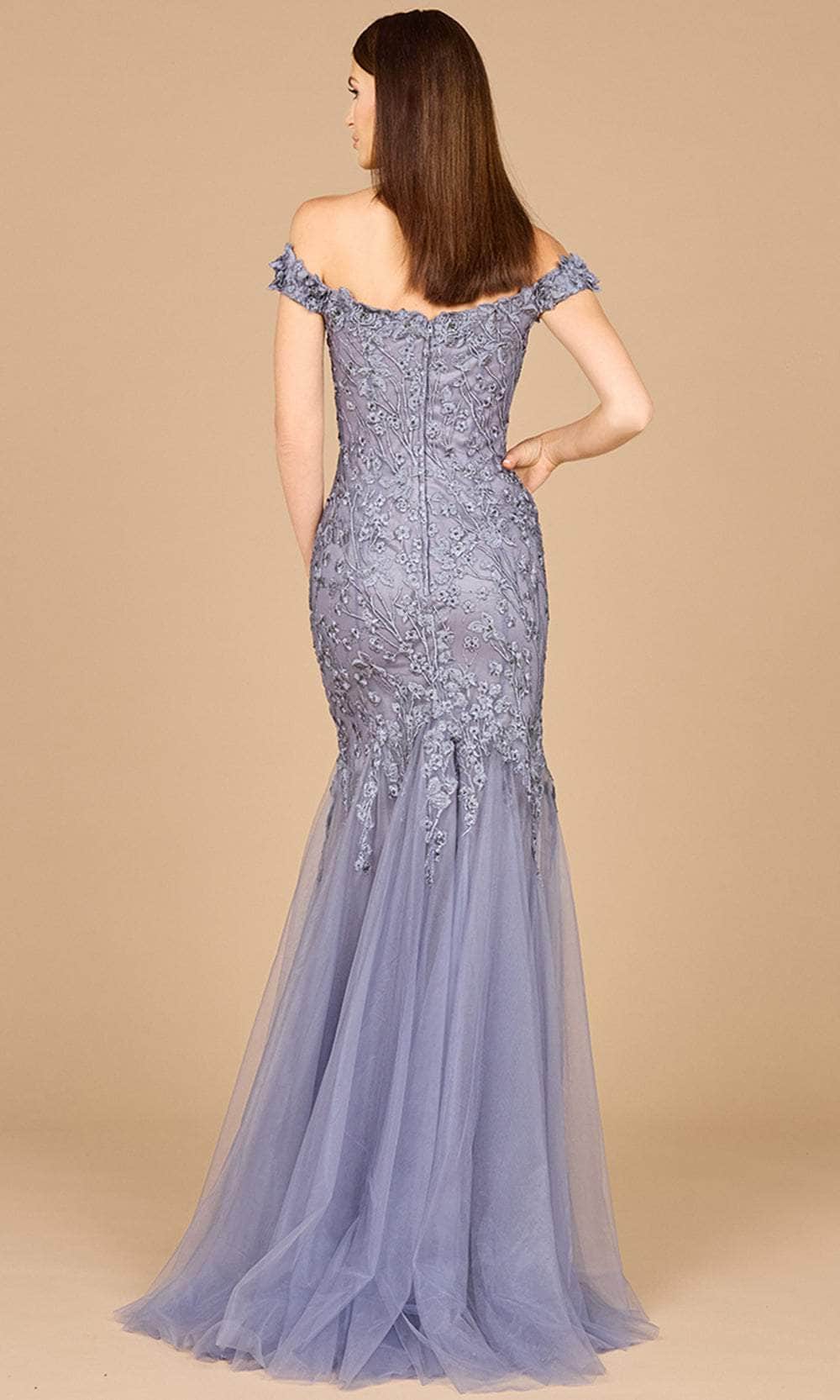 Flaunt your beauty in this timeless Lara Dresses 29021 creation, fashioned for remarkable sophistication. Crusted with floral lace appliques along the arm straps, this stylish beauty starts off with an off shoulder neckline paired with a midrise styled back. Fully adorned with a spectacle of blossoms in embroidered lace and beads, this stylish stunner crafts a mermaid silhouette with a tulle flare that ends in a frothy train. Experience the ultimate extravagance in this finely designed Lara Dresses 29021 masterpiece. Model is wearing the Grey Blue color.
