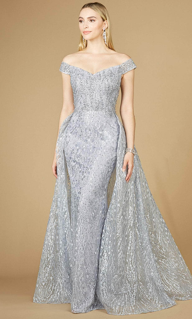 Be pretty in this lovely Lara Dresses 29205 masterpiece. Mesmerizingly ornate with sparkling beads and lovely embroideries in a stunning pattern, this dazzling gown features a fitted bodice and an off-shoulder, V-neckline. The back has a zipper at the center which ensures a perfect fit. From your natural waist, the skirt flares in trumpet silhouette accompanied by a billowing overskirt. This unique Lara Dresses 29205 creation is sure to amaze everyone on your special event. Model is wearing the Slate color.