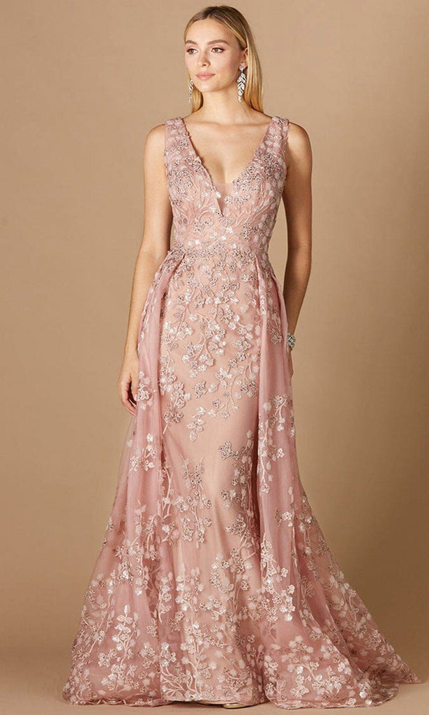 Lara Dresses 29324 - Embroidered V-neck Long Gown
