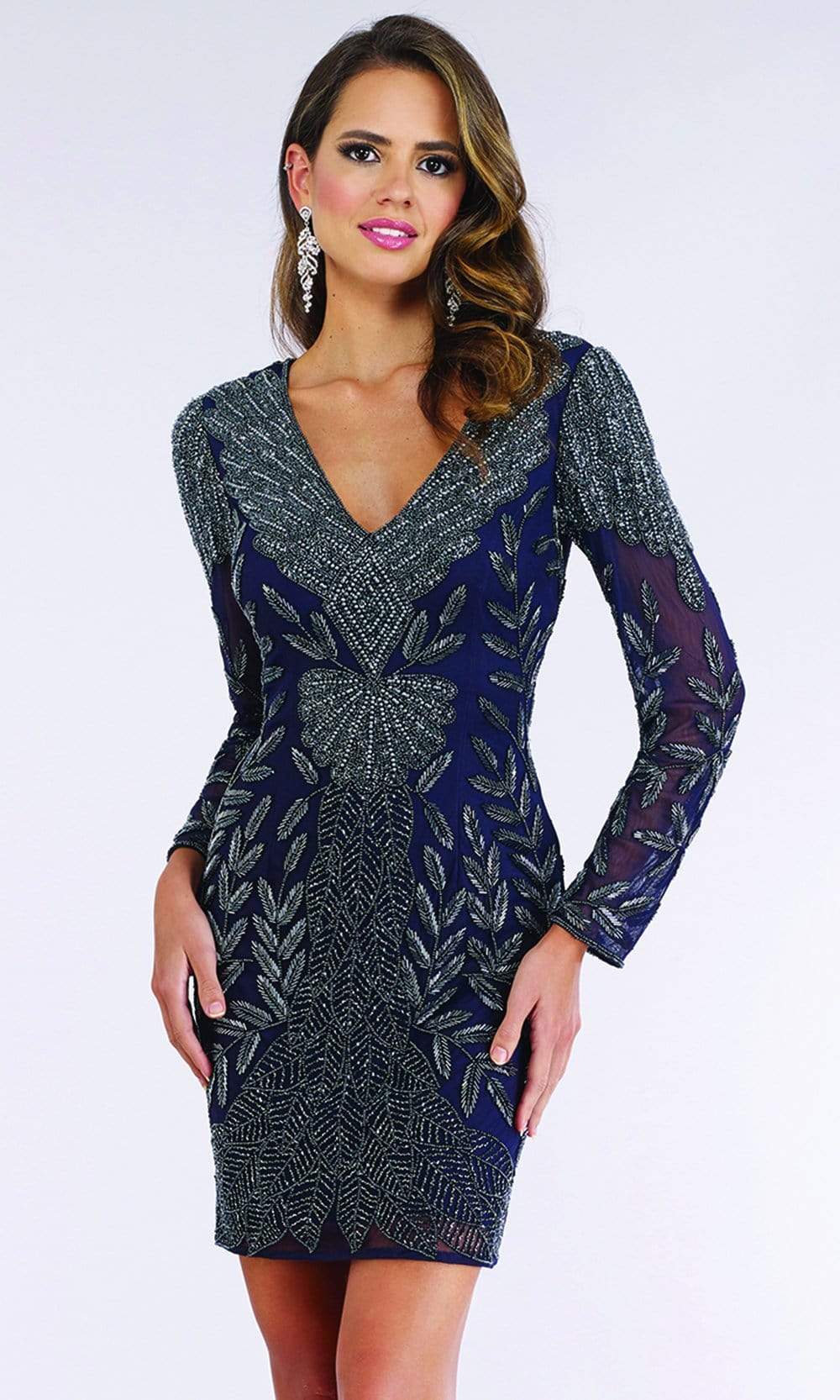 Catch everyone’s eyes when you arrive in this gorgeous Lara Dresses 29376 creation. Designed with a silver spectacle of foliage beadwork, this dress shows a deep v-neckline with sheer long sleeves. The fitted bodice is coupled with a full back and a zipper closure. The cocktail length skirt skims into a sheath silhouette. Exude charm by dressing in this Lara Dresses masterpiece.