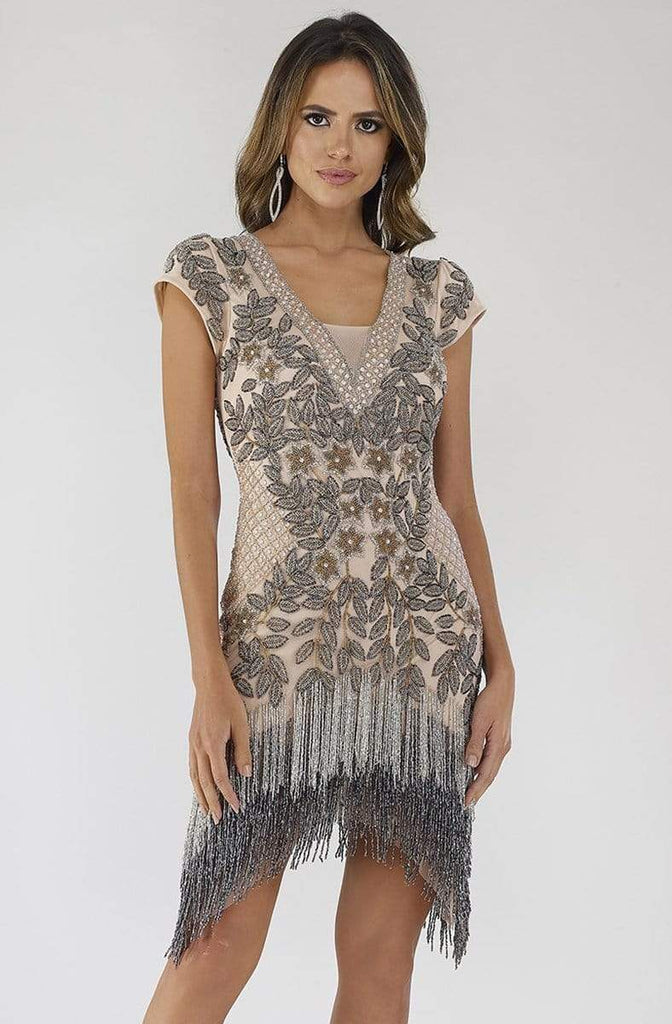 Lara Dresses - 29609 Floral Deep V Neck Fringe Cocktail Dress