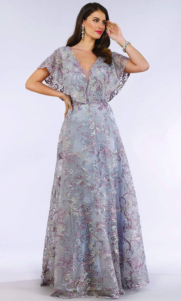 Radiate a style that is as timeless as old Hollywood in this mesmerizing Lara Dress 29641 evening gown. Elegantly crafted in full length embroidered lace and lattice on beaded mesh, this marvelous piece is designed with mirrored V neckline and back with cape sleeve. From the natural waist, the A-line skirt flows astoundingly down to a full-length hemline. Climb your way to the top of the best-dressed list when you fascinate in this Lara Dress masterpiece.
