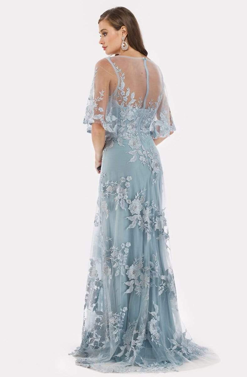 Astound everyone with the sheer magnificence of this Lara 29772 creation. Flatteringly adorned with a floral lace appliques on tulle fabric, this beauty shows an illusion bateau neckline with cape like sleeves and sheer back. This romantic piece flourishes a full-length A-line skirt. Fashion an elegance that is utterly eloquent in this Lara dress.