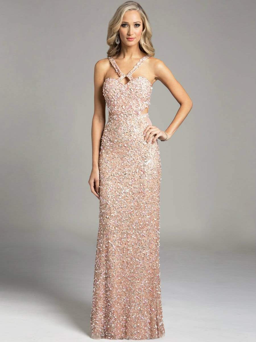Bloom with loveliness in this fabulous Lara 42633 halter. This gown is definitely not something to be ignored at thanks to its mesmerizing display of sparkles with seemingly countless embellishments that cover the whole dress. The keyhole addition is just a playful ode to this fantastic dress. Another Lara creation that will definitely grace you up in any social and evening party!