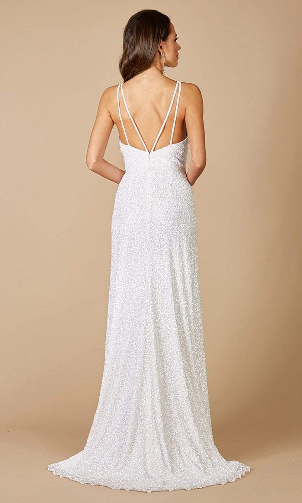 Promote attention-grabbing style in this stunning Lara Dresses 51065 evening dress. This dress highlights a plunging V-neckline supported by thin straps in a sleeveless, fitted and beaded bodice. The skirt reveals an A-line silhouette with slit while the back shows a mid-open back with back zipper closure. Lara Dresses creation is perfect for any formal evening. Model is wearing Ivory color.