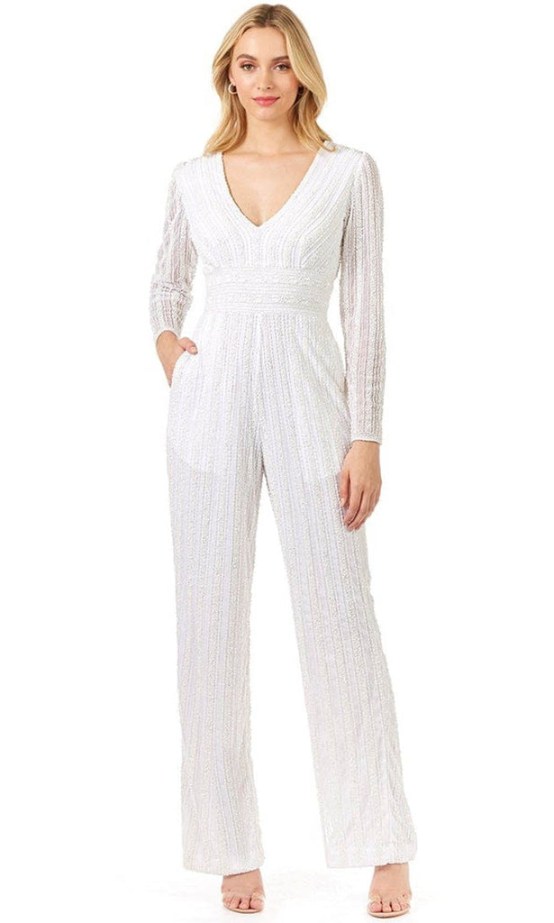 Lara Dresses 51108 - Empire V Neck Sheer Long Sleeved Jumpsuit