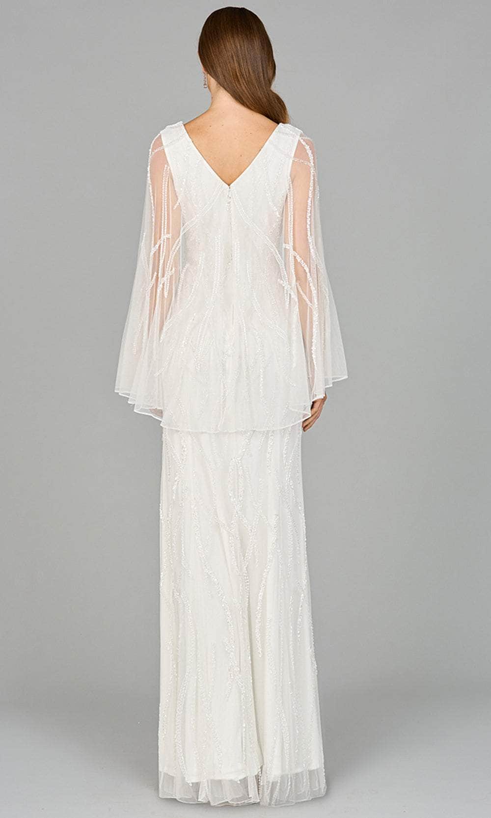 Prepare to enchant hearts in this beautiful creation from Lara Dresses 51151. Decorated with crystal beaded details, this gown adds a dash of sparkle that will make heads turn as you walk down the aisle. It features a v-neckline mirrored by the midrise v-shaped back, while the illusion cape sleeve adds an element of allure. The skirt smoothly drapes your body, crafting a striking sheath silhouette. Celebrate the journey to forever as you saunter with gorgeous Lara Dresses 51151. Model is wearing Ivory color.