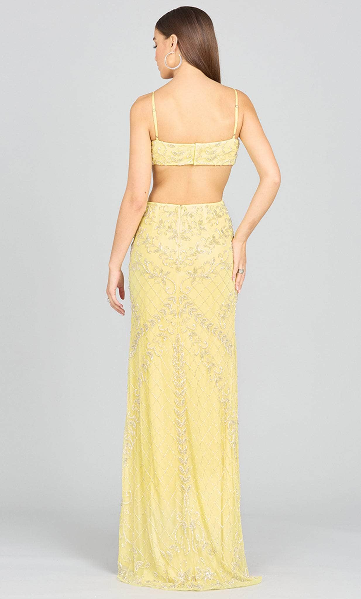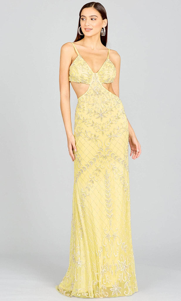Accentuate those gorgeous curves when you don this stylish Lara Dresses 9989 creation. Charmed with a floral spectacle rendered in beads, this exquisite piece reveals a v-neckline hanging from spaghetti straps. Revealing angular side cutouts and a bandeau strap back, the lower portion reveals an open design as the sheath skirt spills lavishly into a sweeping train. Make magic in this refined style that would make you stand out in this Lara Dresses masterpiece. Models are wearing the Lemon and Periwinkle colors.