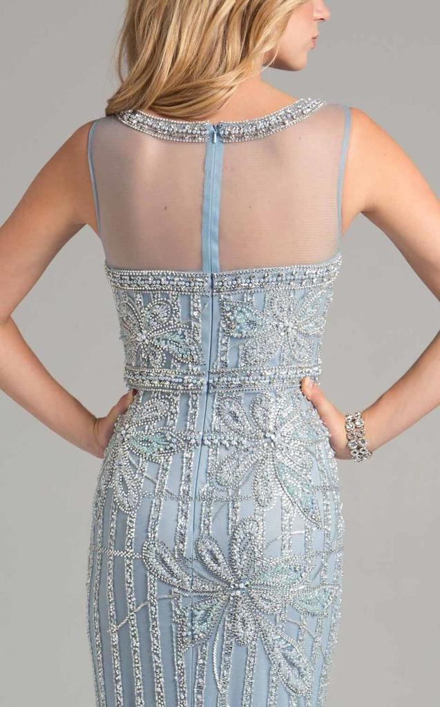 Wear this red carpet ready dress by Lara 32955. This sleeveless dress showcases fine sparkling stones at the neckline and sheer fabric at the upper portion. Flaunts a subtle sweetheart lining with glittering stones and beadwork throughout the fitted silhouette. The skirt has a soft flared shape and finishes with a full length hem. A subtle train trails at back. This Lara dress is a stunning look for your evening occasion.