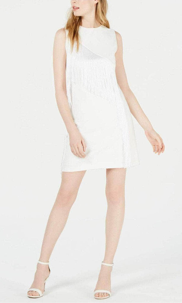 Amass a flurry of admirers even in a stylishly crowded space when donning this Laundry HP01W61 creation. Sculpted with tailoring seams on a sleeveless bodice, this stunner features a jewel neckline coupled with a simple full back and a zipper closure. Detailed with fringes trailing diagonally along the bodice, the sheath skirt skims the hips and ends with a short hemline. Be the delight of the crowd in this ultra-chic Laundry masterpiece. Couture Candy is committed to provide the very best when it comes to dresses for every occasion, and we are delighted to have Laundry on our side to aid us in delivering exquisite dresses for various occasions that are sure to make heads turn. Models are wearing the Black and White colors.