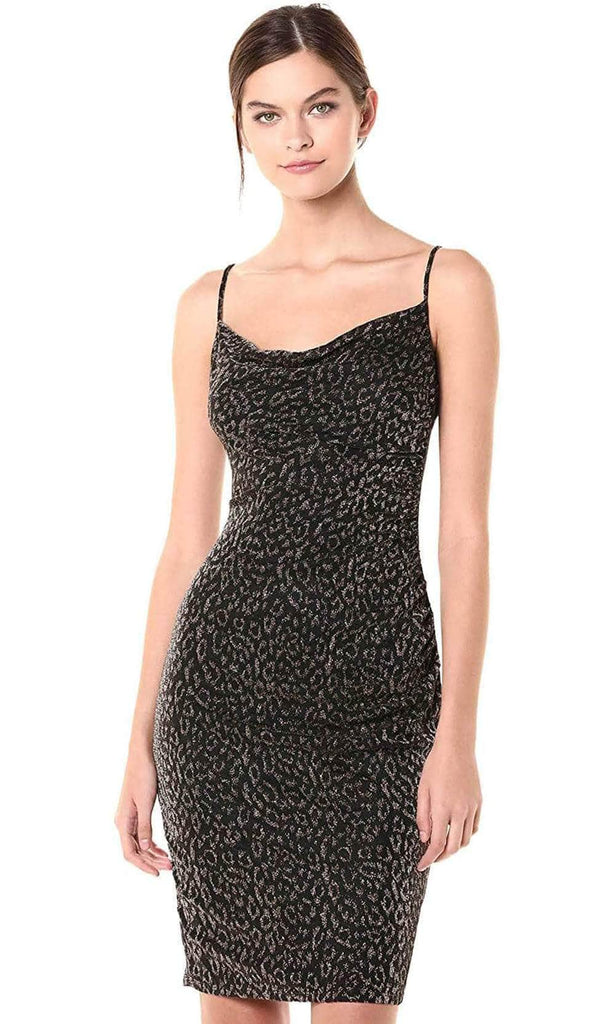 Dare to express yourself in this brazen dress by Laundry HQ05K67. This figure flattering piece is crafted in a tonal animal print fabric and accented by ruching details. It features a straight across neckline in a sleeveless frame supported by adjustable spaghetti straps creating a mid-open back with zipper closure. The skirt runs down in a mid-thigh hem. This Laundry creation is simply breathtaking. Couture Candy is committed to provide the very best when it comes to dresses for every occasion, and we are delighted to have Laundry on our side to aid us in delivering exquisite dresses for various occasions that are sure to make heads turn. Model is wearing Black color.