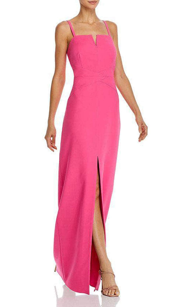 Turn yourself into a head-turning sensation by slipping into this utterly fetching Laundry HR01W08 masterpiece. This fitted dress displays a sleeveless, straight across neckline with V notch detail and adjustable spaghetti straps. The back is mid-open and has a zipper closure while the sheath skirt flows smoothly to the floor and reveals a front slit to perfectly elongate your sexy leg. Mesmerize the crowd with your sophisticated flair in this Laundry creation. Couture Candy is committed to provide the very best when it comes to dresses for every occasion, and we are delighted to have Laundry on our side to aid us in delivering exquisite dresses for various occasions that are sure to make heads turn. Model is wearing the Pink color.