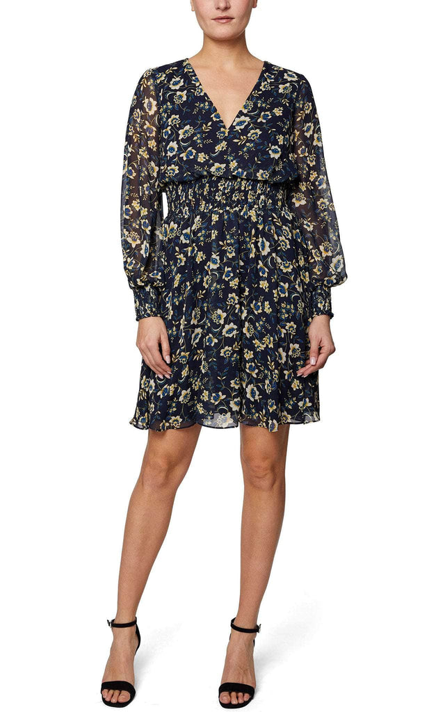 Impress everyone with the breathtaking elegance of this midi dress designed by Laundry HU05D37. Dress in long sleeve bodice that is crowned with a V-neckline. For a glamorous appearance, an elastic waistline is added. Gorgeously tailored in a floral printed chiffon fabric that makes this winning piece look more sophisticated. The back is fully enclosed and the skirt has an A-line silhouette and flares at the mid-thigh length. Allow yourself to be enchanted by this Laundry HU05D37 masterpiece. Model is wearing a Multi color.