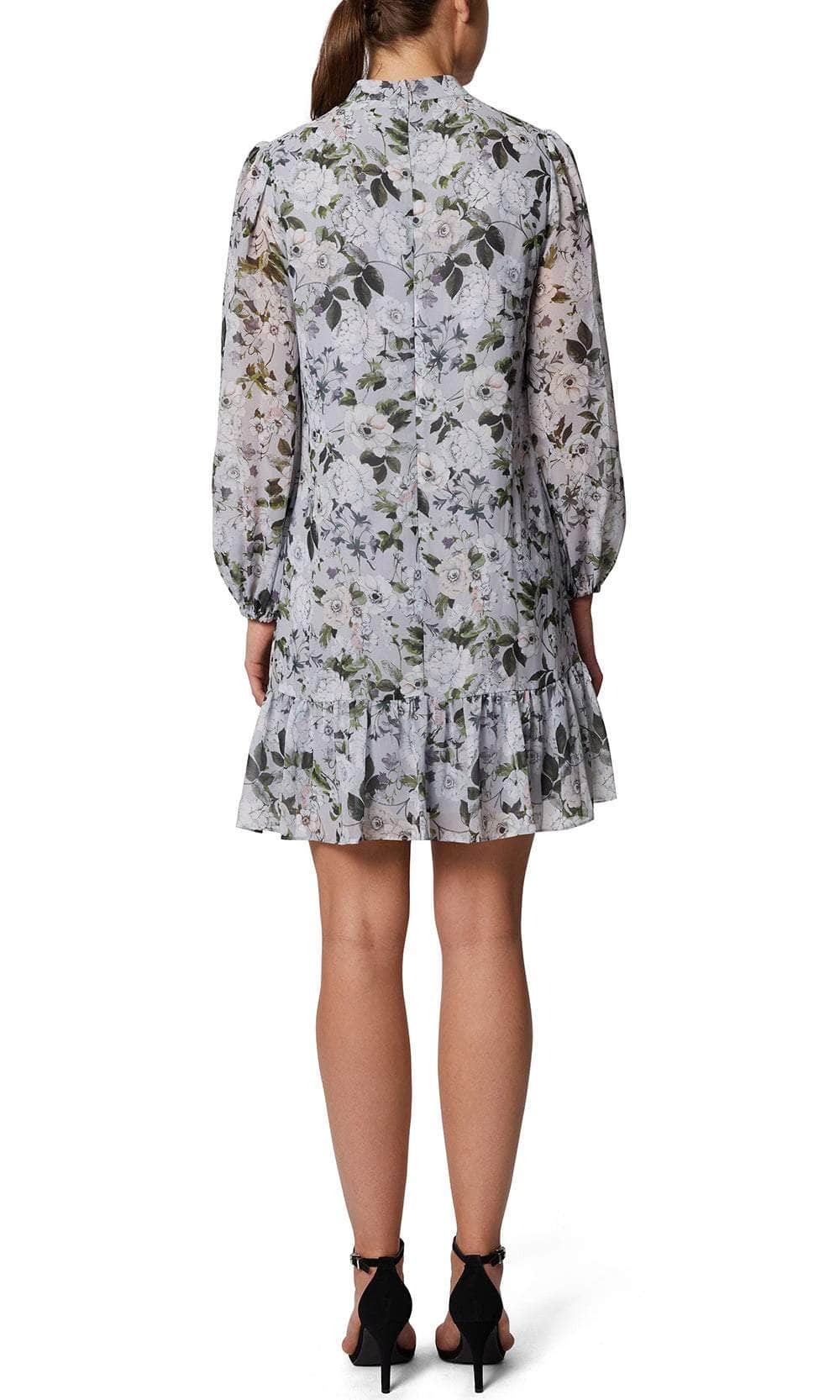 Be the delight of everyones eyes wearing this Laundry HU07D67 creation. Detailed with floral prints on the chiffon fabric, this stunning piece features a high neckline, full back and long bishop sleeves with a sexy slit. Completing this dress is an A-line skirt that trickles down to the mid-thigh hem and ends in a ruffled trim. Feel dainty and feminine in this enchantingly designed dress by Laundry HU07D67. Model is wearing the Full Bloom color.